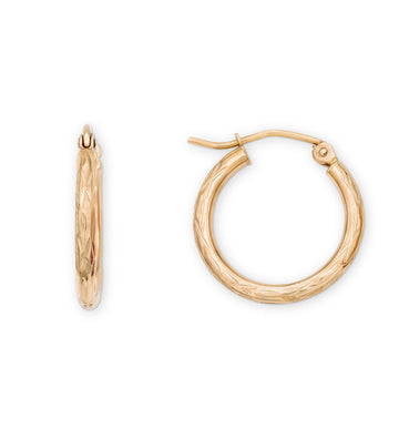 Everyday Textured 17mm 14K Solid Yellow Gold Hoops