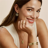 Meet the Midnight Hour Gold Bangle, a stunning sleek bracelet that features a sprinkling of mini celestial motifs etched around the band of the bracelet. This easy-to-wear bracelet features a seamless clasp that lets you style effortlessly even if you are on-the-go. The perfect bangle to uplift any look, layered or solo.