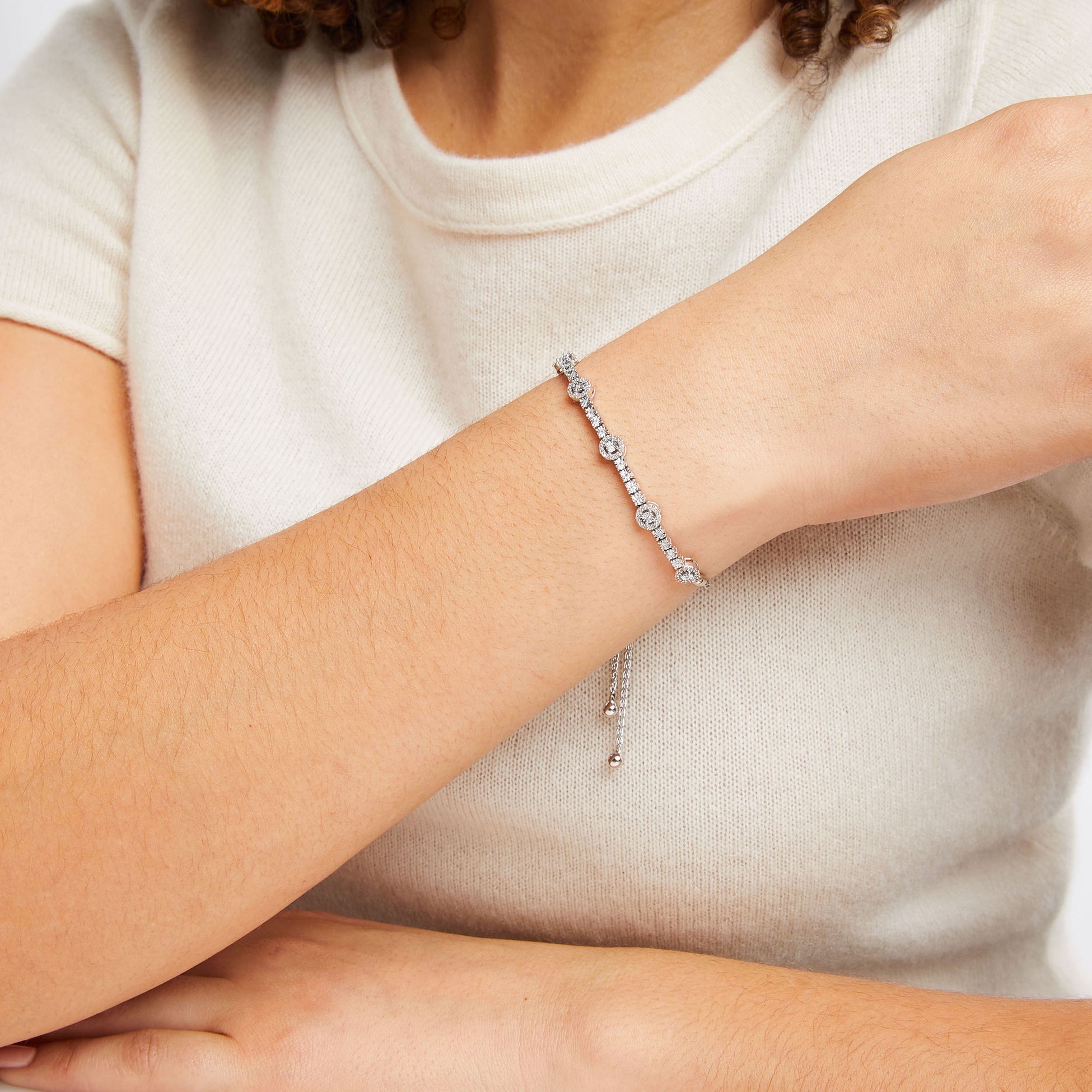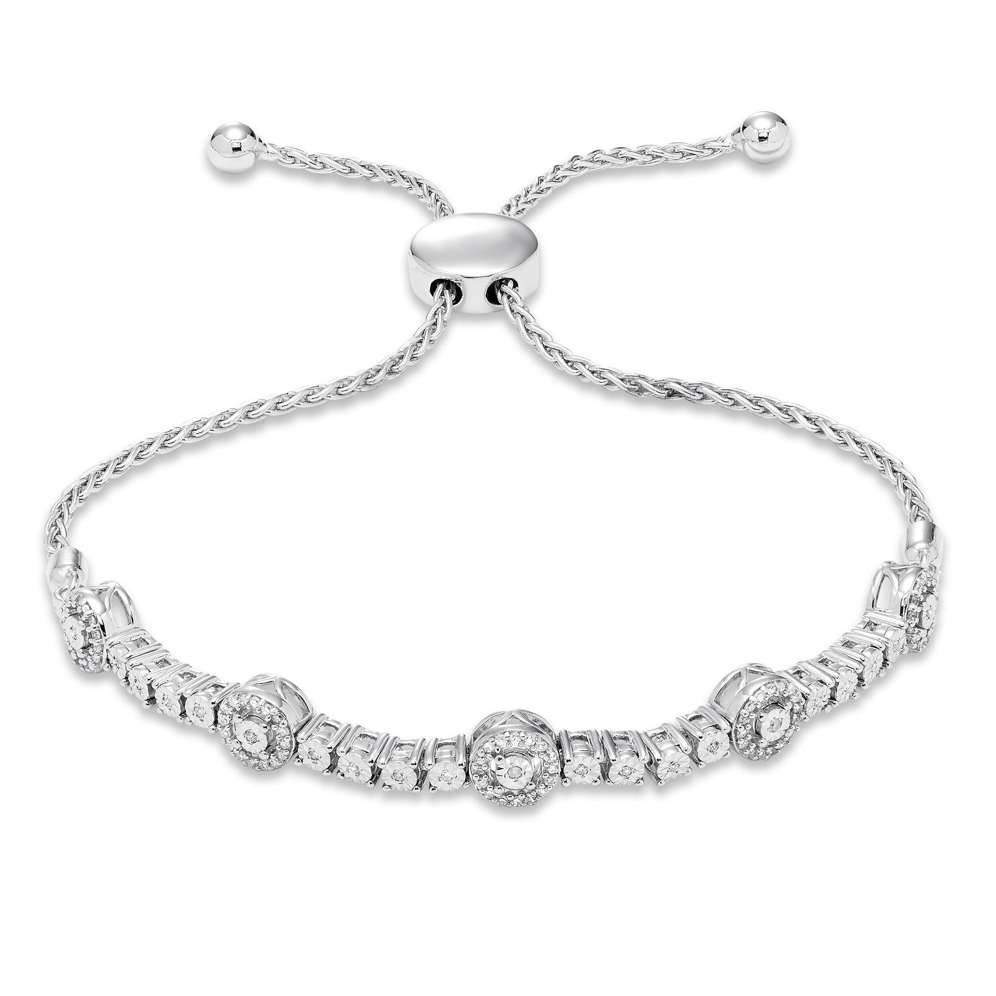 The Pre-Owned Kay 1/5 ct Round-cut Diamond Bolo Bracelet in Sterling Silver is a stunning piece that makes the perfect gift for someone special, including yourself. This intricately designed bracelet is made of high polish silver adorned with diamonds. It measures 9.5 inches and is adjustable.