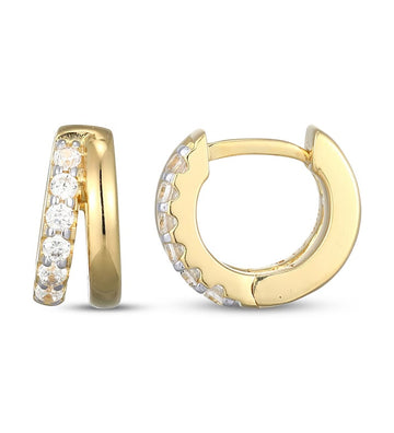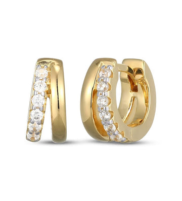 Lab-Grown Diamond Double-Row Split Huggie Hoop Earrings 1/5 ct tw 24K Yellow Gold Vermeil Sterling Silver