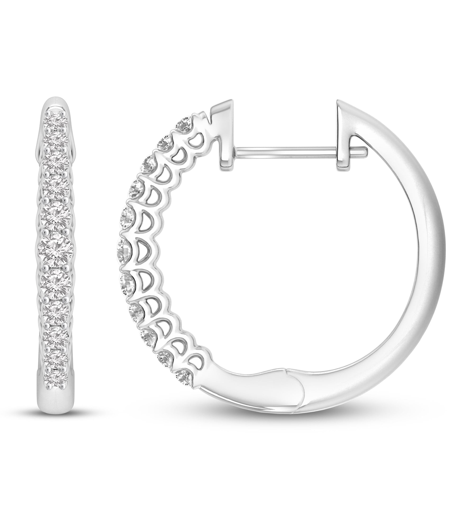 Pre-Owned Jared 10k White Gold 1/2ct Round Diamond Pave Hoops