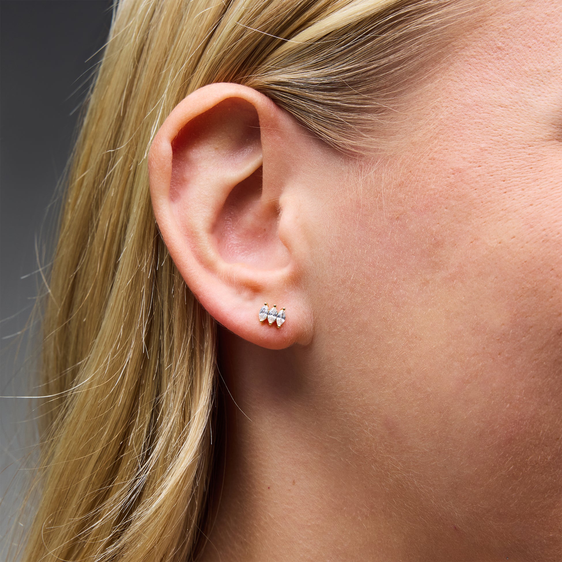 A sleek marquise-cut lab-grown diamond takes center stage in this low-profile, high-impact stud—made to shine, day or night.