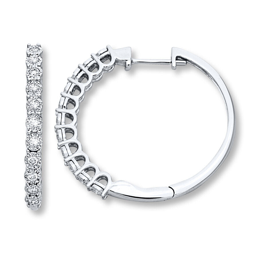 Pre-Owned Jared 10k White Gold 1/2ct Round Diamond Pave Hoops
