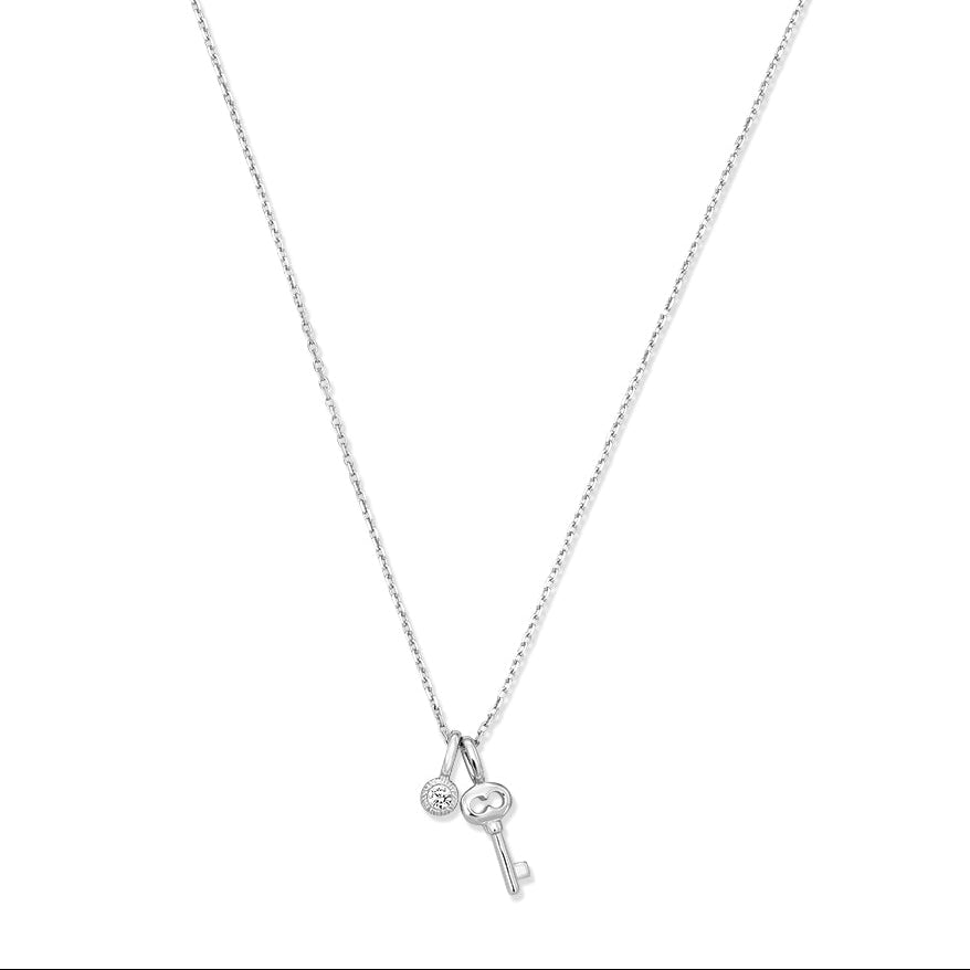 Amara Lab-Grown Diamond Accent Charm Key Pendant Necklace in Sterling Silver