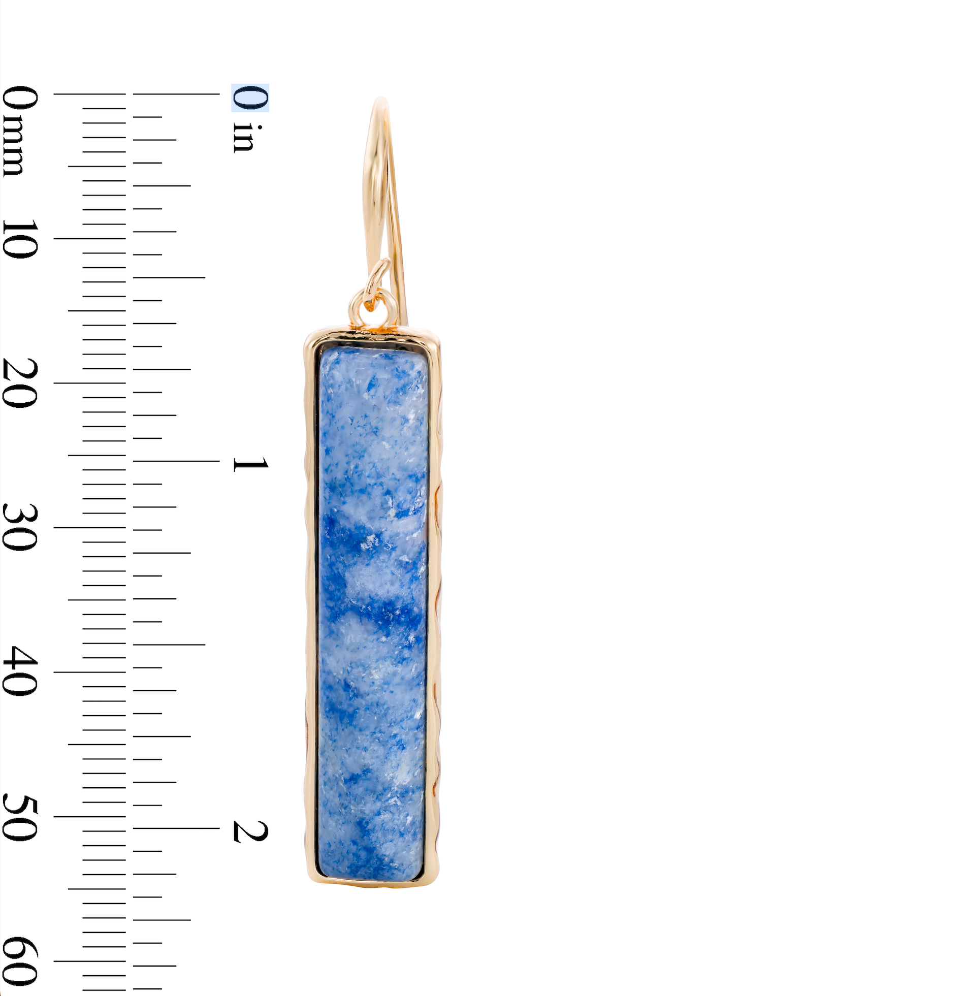 Glow with the flow in blue line stone drops that reflect nature’s brilliance. Set in 14k gold plating over recycled brass, this conscious style that makes a splash at work or weekend brunch.
