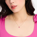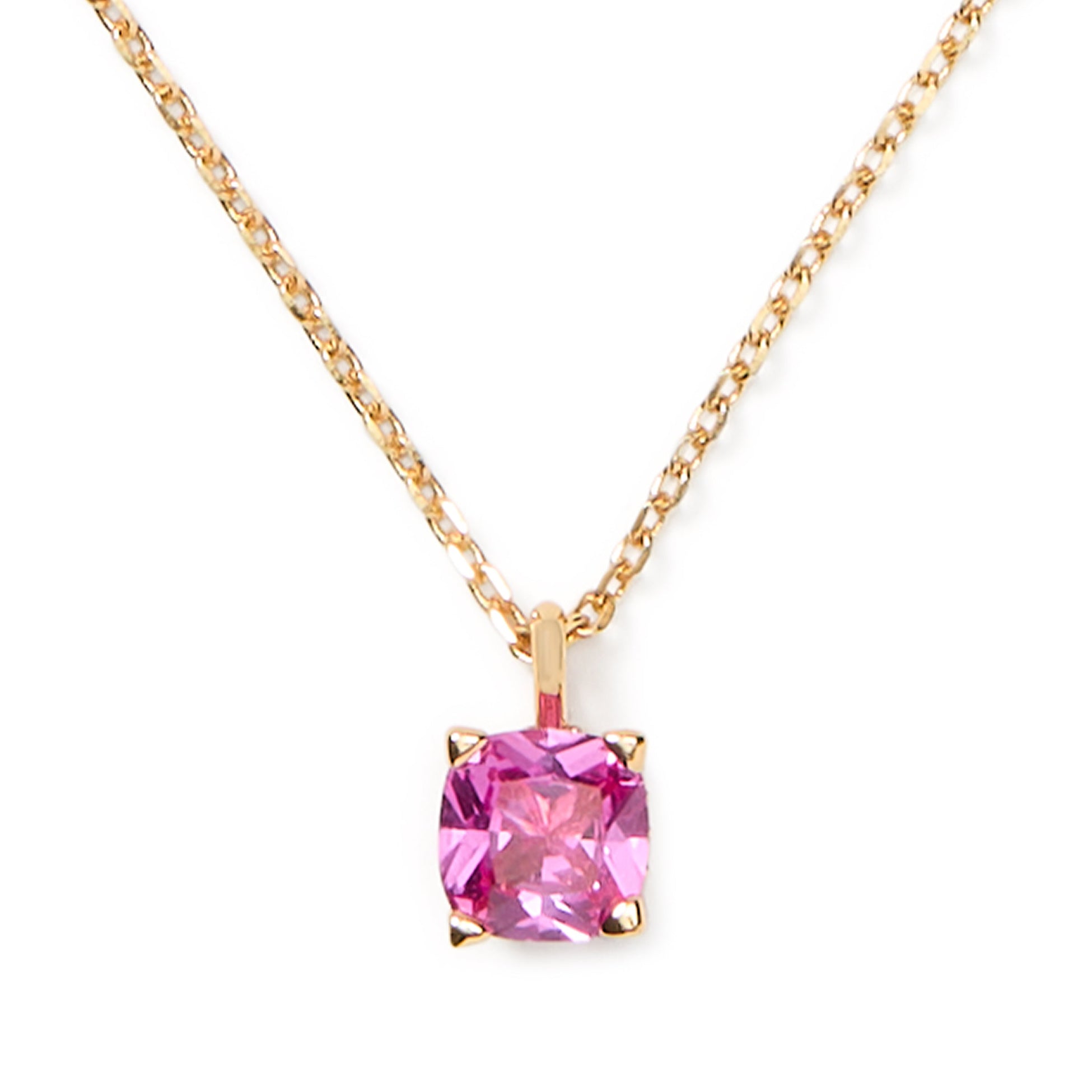 The Little Luxuries Pink Square Pendant in Gold by kate spade new york is an elevated everyday essential that adds a beautiful pop of color. This necklace is made of high polish, 18k gold plating with a bold crystal pendant, which measures 6mm.