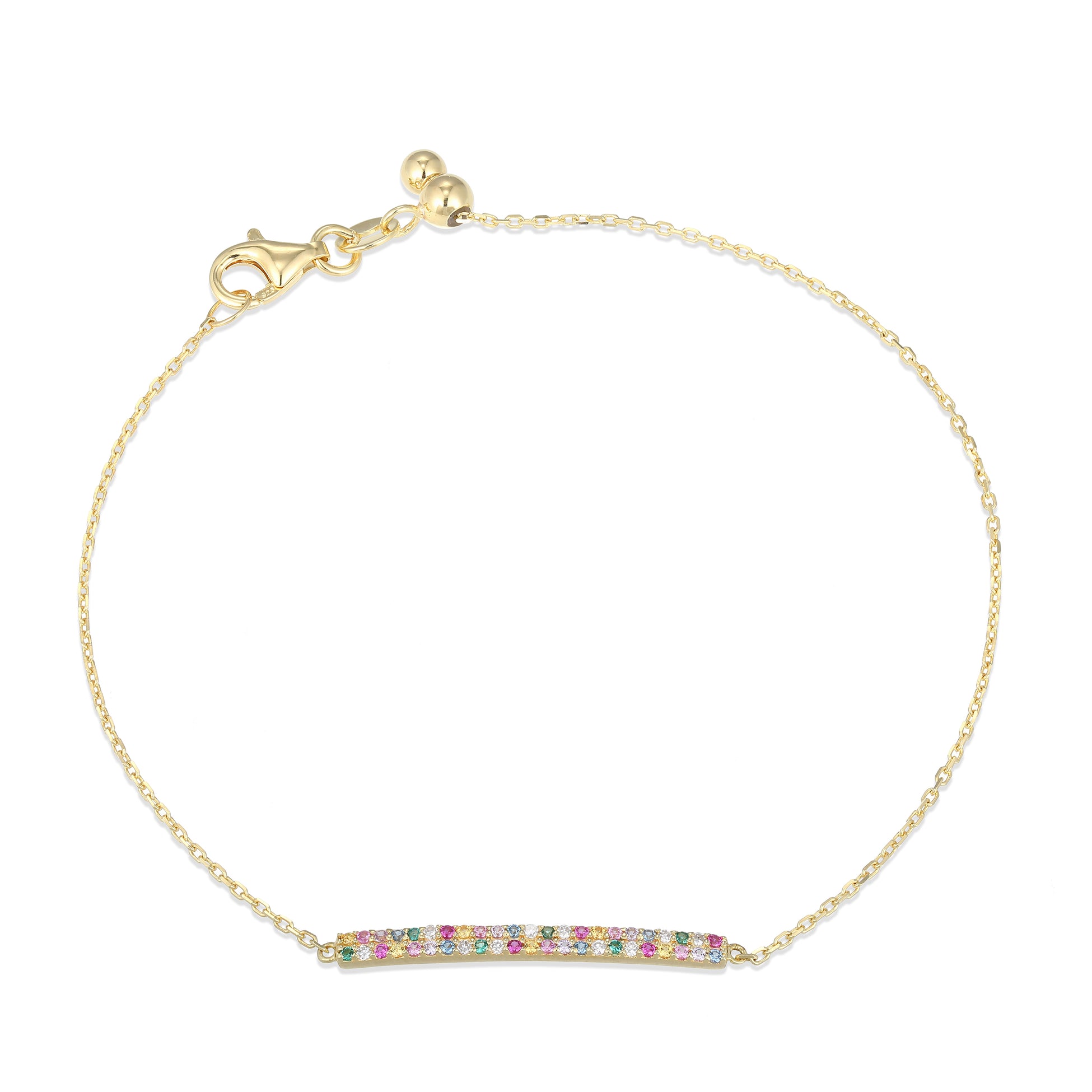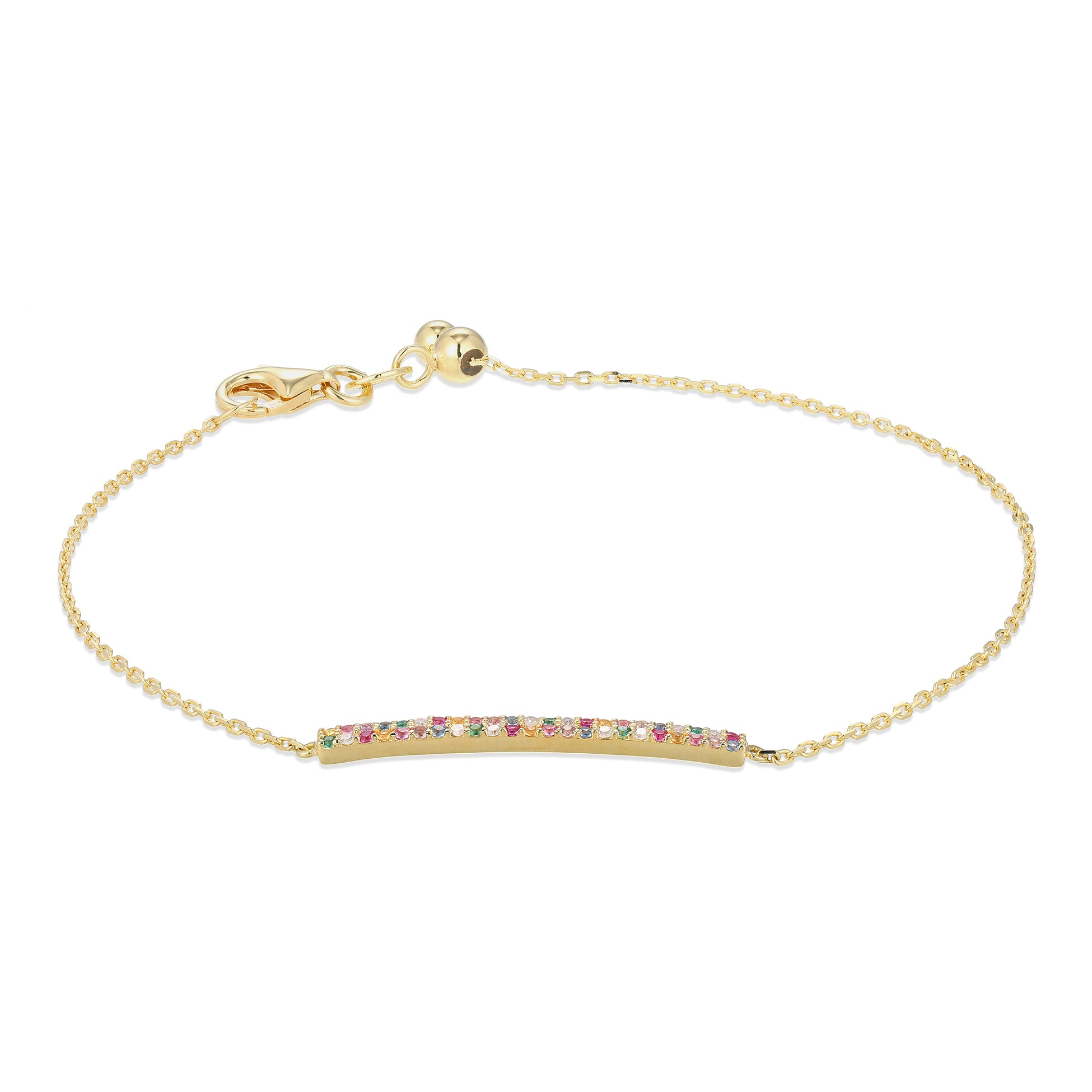 This adjustable bracelet is dotted with a rainbow of lab-grown gemstones and sparkling lab-created diamonds for a vibrant look. Set in 24k gold vermeil over sterling silver, it’s a colorful twist on everyday luxury.