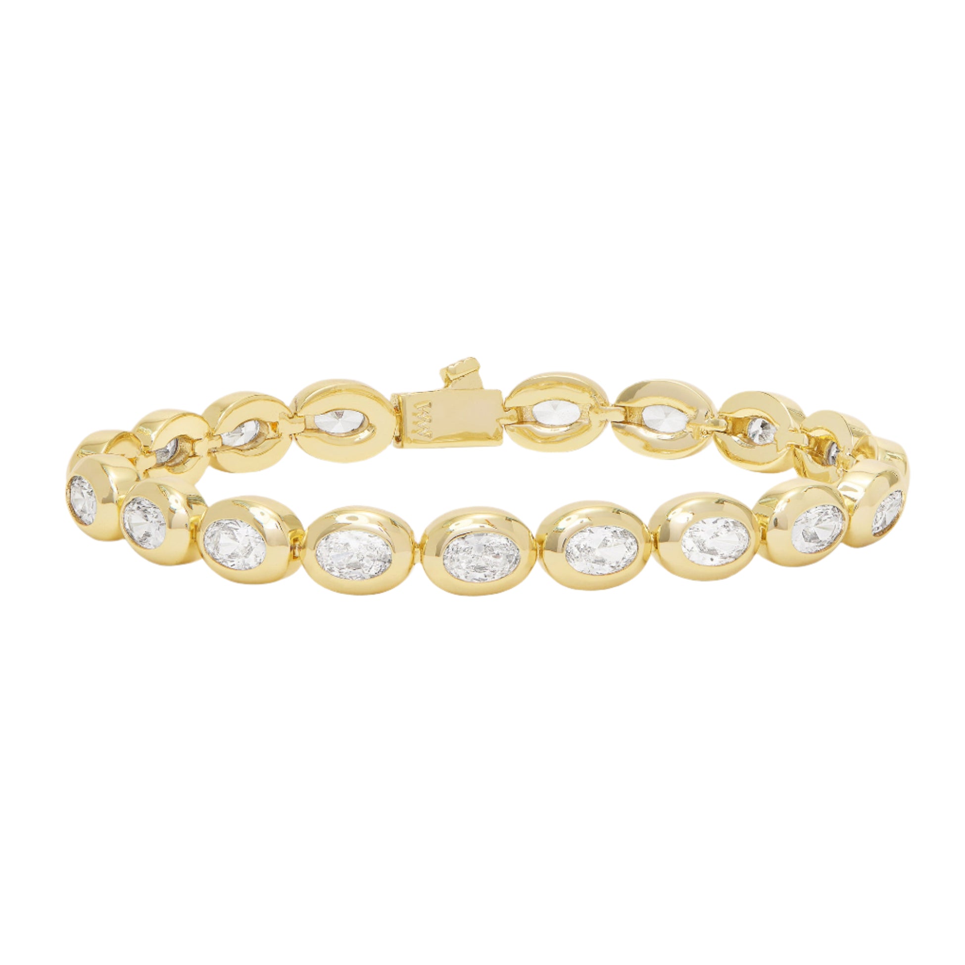 The classic tennis bracelet is reimagined with 18k gold plating and a high-shine CZ lineup. It’s elegant, empowering, and made to be worn like you mean it.