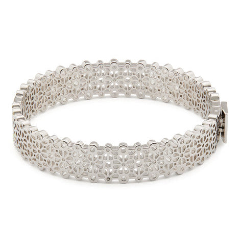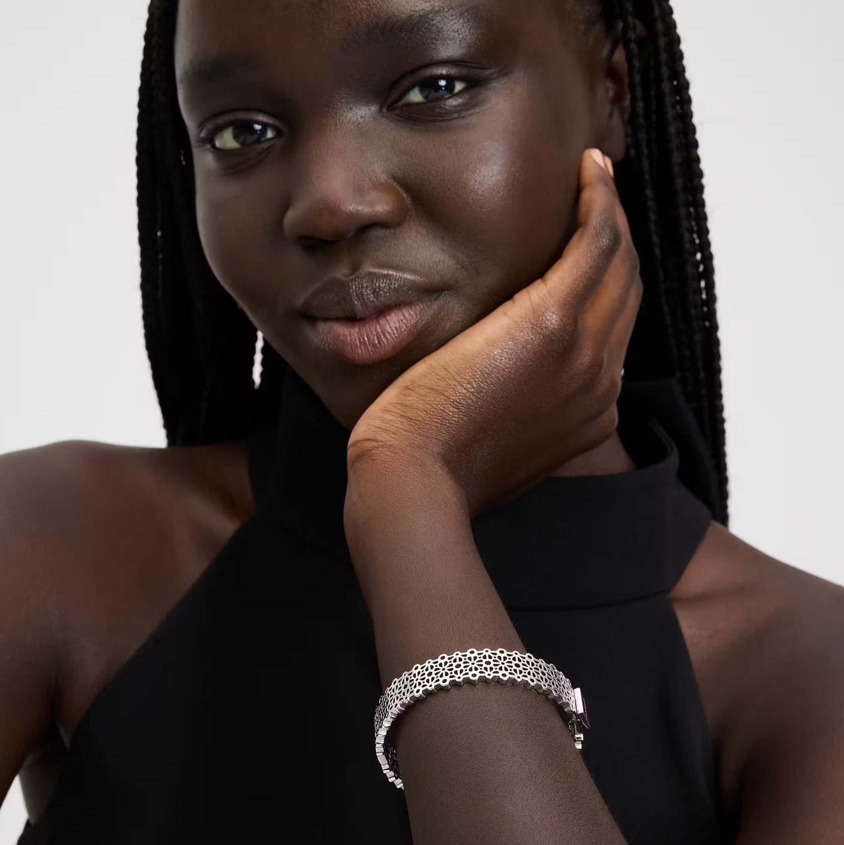 This sculptural bracelet brings a romantic twist to your everyday staples with lace-inspired detailing. Lightweight and full of texture, it elevates even the simplest look with ease.