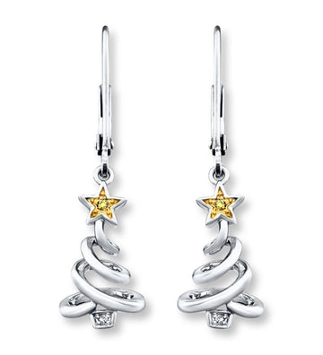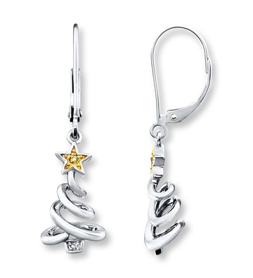 Pre-Owned Kay Yellow & White Diamond Accent Christmas Tree Earrings