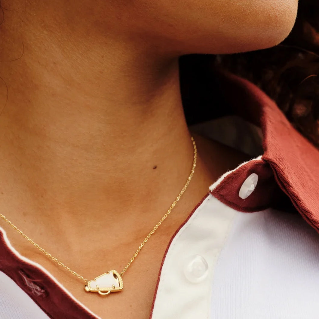 Minimal but full of cheer, this adorable megaphone pendant is framed by the Kendra Scott signature hoofprint detailing for that special KS touch. Stack up some extra spirit and pair this pendant with styles in your team’s colors.