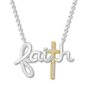 Pre-Owned Kay Silver & 10k Gold Pave Diamond Faith Pendant