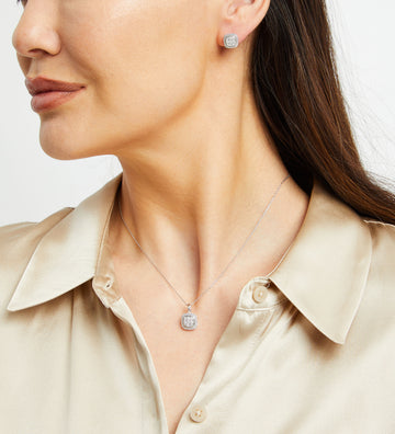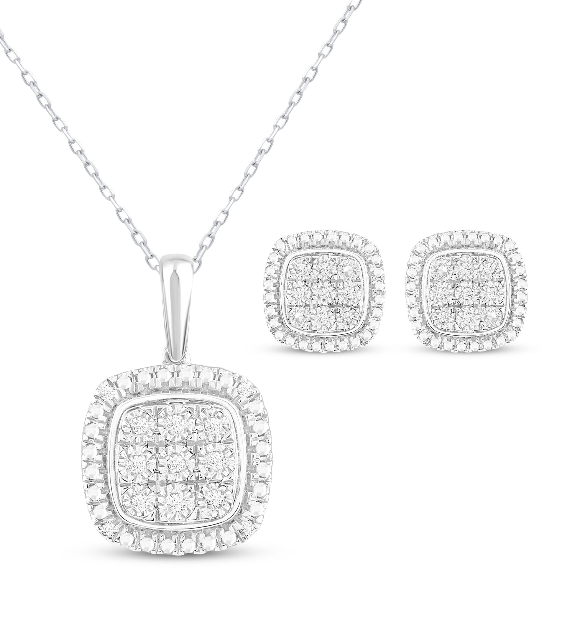 Pre-Owned Kay 1/10 ct Multi-Diamond Cushion-Shaped Necklace & Earring Gift Set