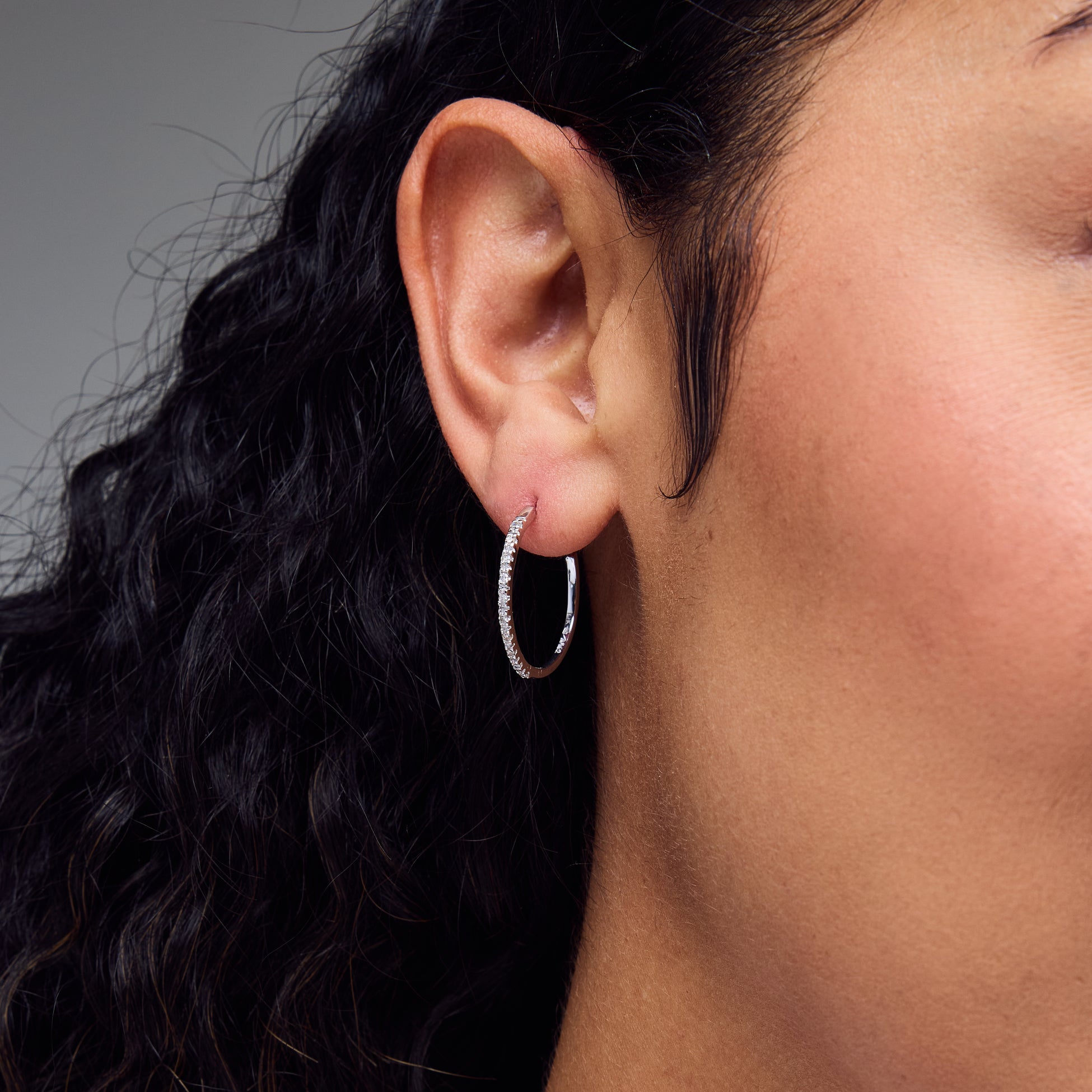 Pre-Owned Kay 1/8ct tw Diamond Hoop Earrings in 10k White Gold