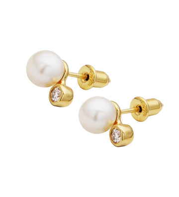 Maris 18k Gold Vermeil 0.143ct tw Lab-Grown Diamond and Cultured Pearl Earrings