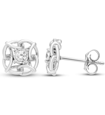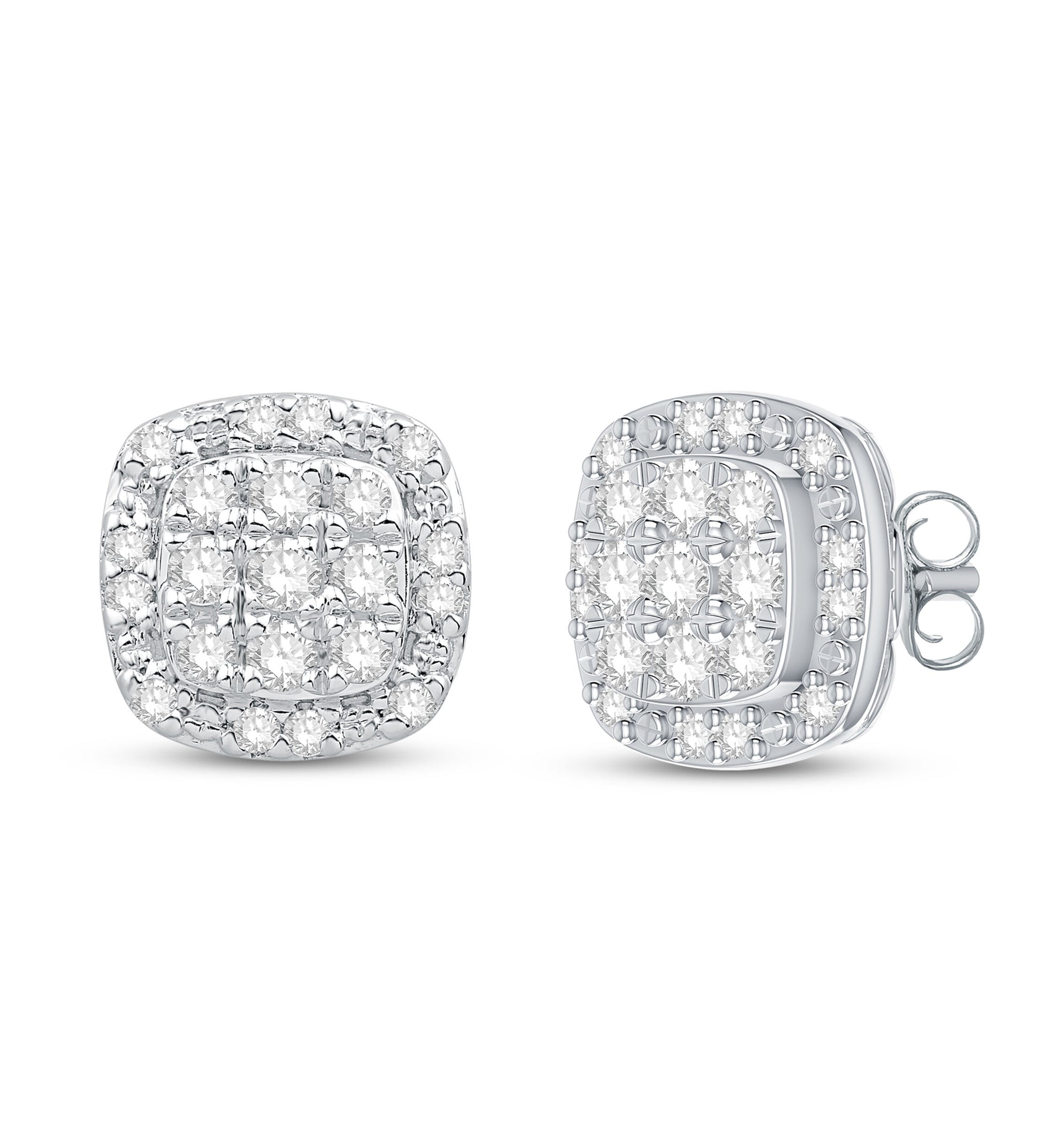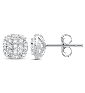 Pre-Owned Kay 10k White Gold 1/4ct tw Round Diamond Pave Square Studs