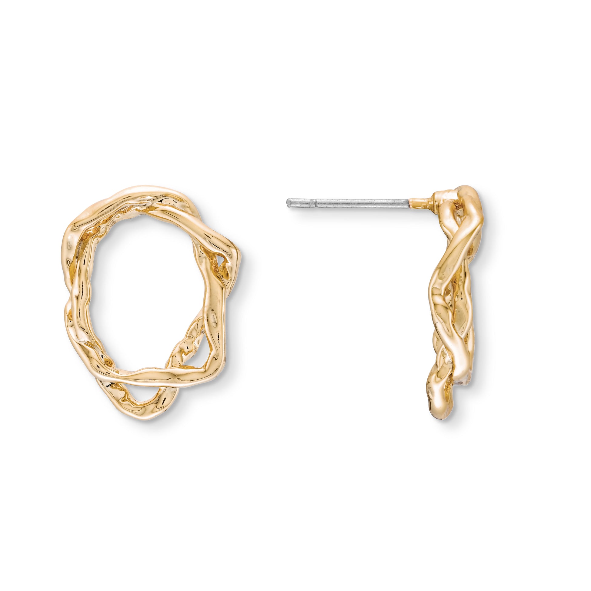 The Aspen Studs in Gold from Rocksbox Redefined are elegant and organic front-facing hoops. These earrings are made of high polish, 14k gold-plating, and measure 0.5".