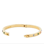 This colorful bangle with a flexible hinged silhouette makes stacking effortless. The bold palette and polished finish will stand out in your wrist stack.