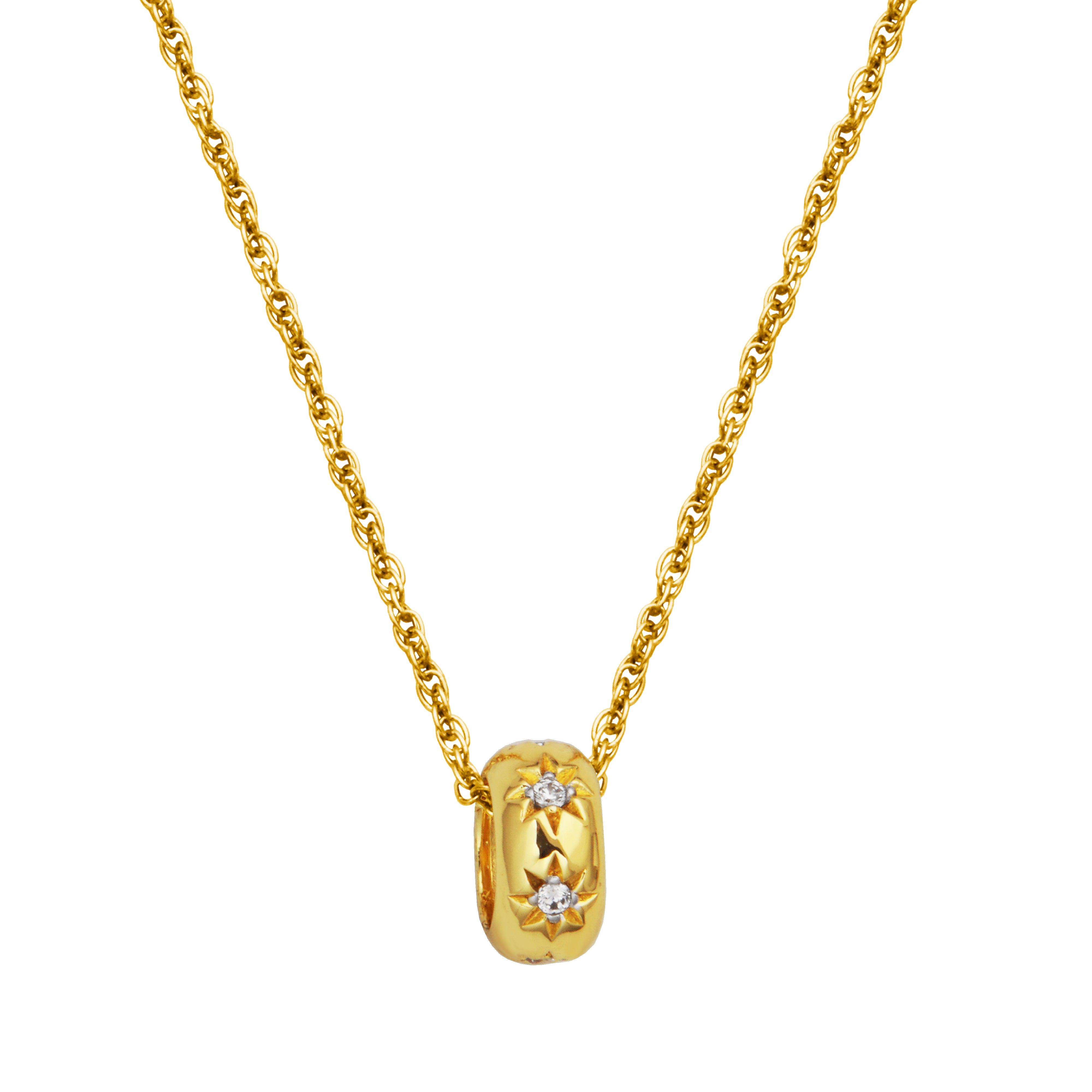 A softly sculpted charm with starry details—delicate, dimensional, and made for layering.