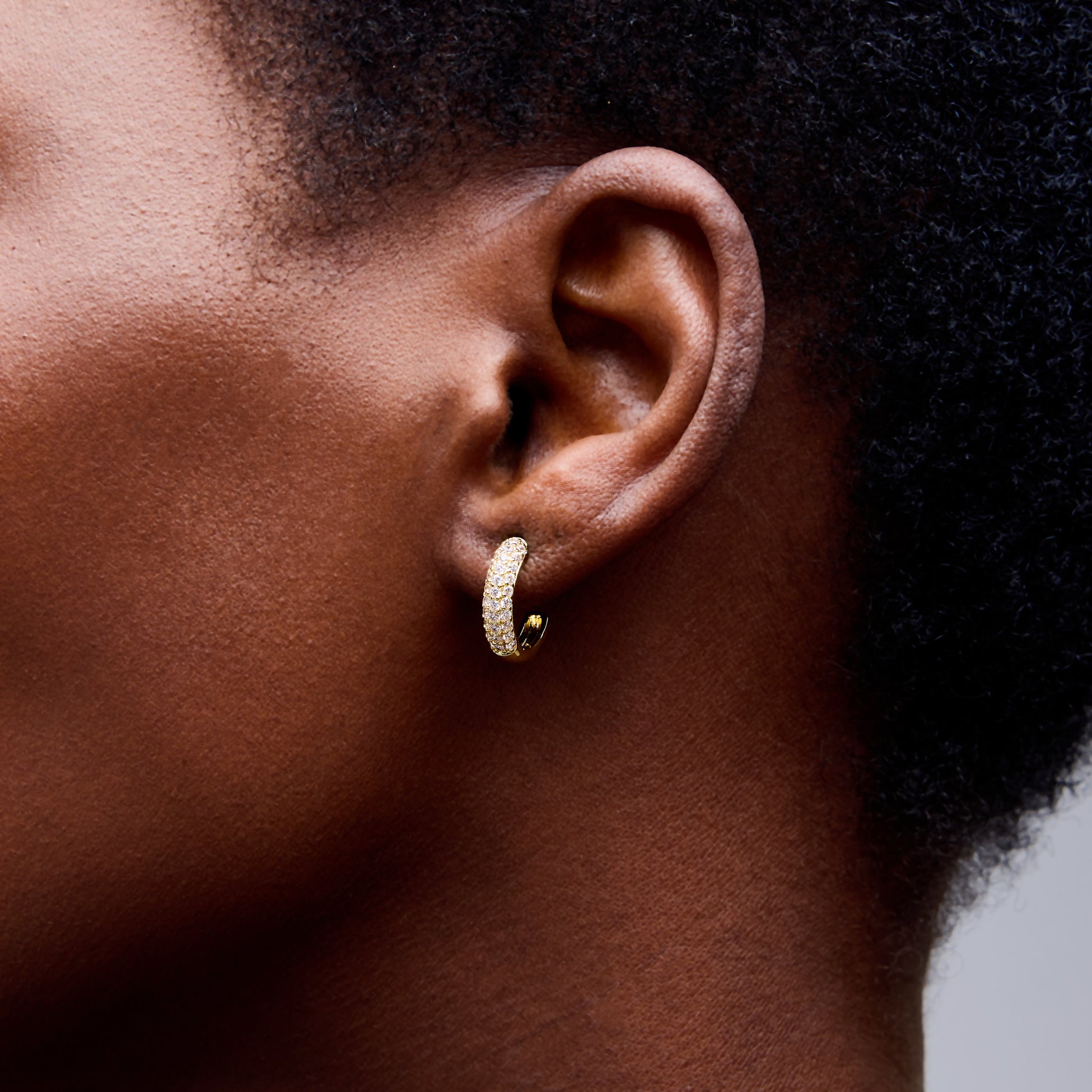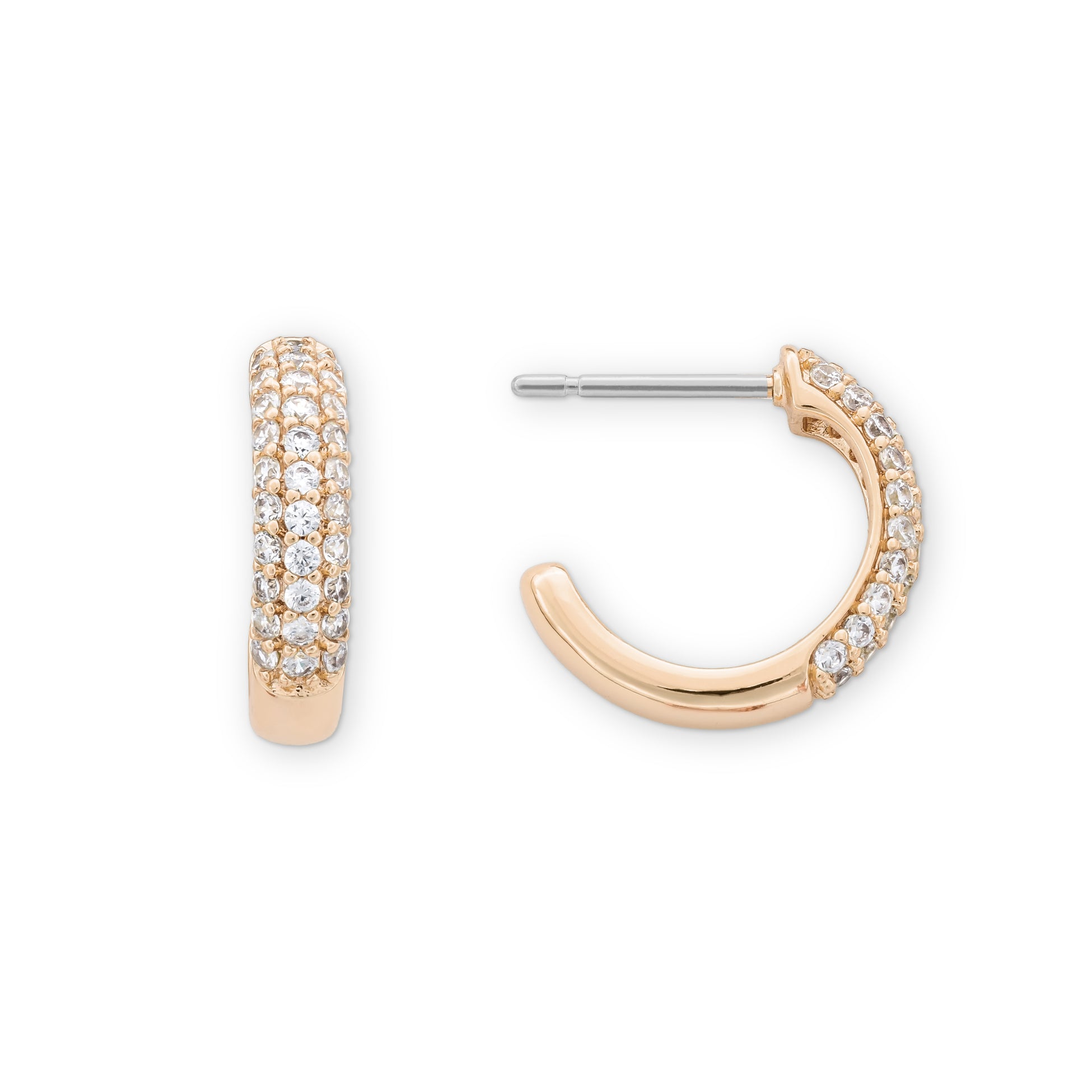 These are little hoops with big impact. The Chandler Pave Huggies feature cubic zirconia set in 14K gold plating, adding the perfect amount of shine to any ear stack.