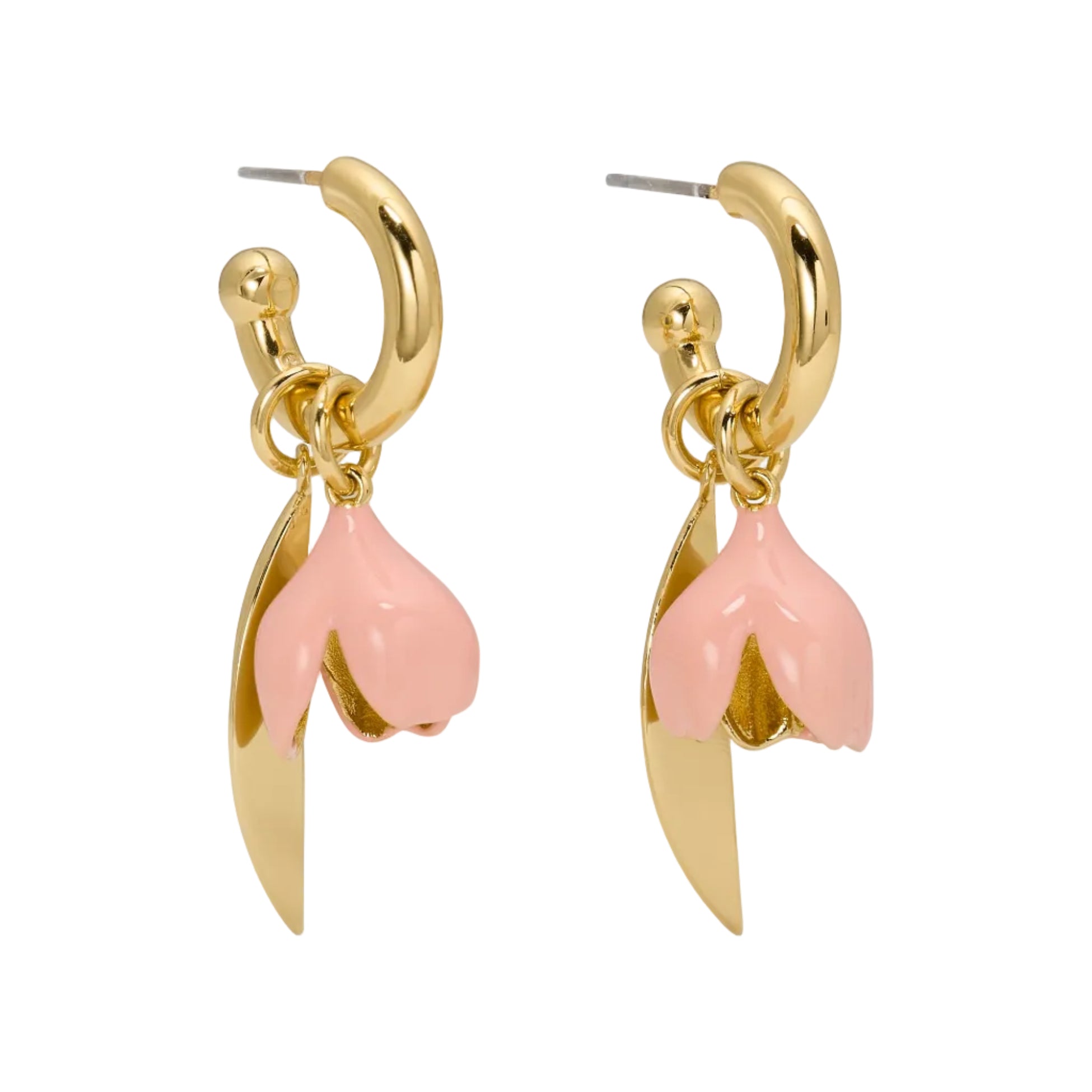 Soft pink enamel petals sway from delicate hoops, adding a fresh floral touch that feels sweet without trying too hard.