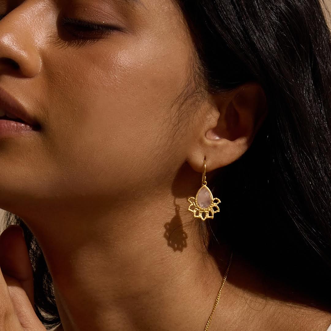 Rose quartz petals meet a lotus-inspired shape. Lightweight with just enough shine to catch compliments.