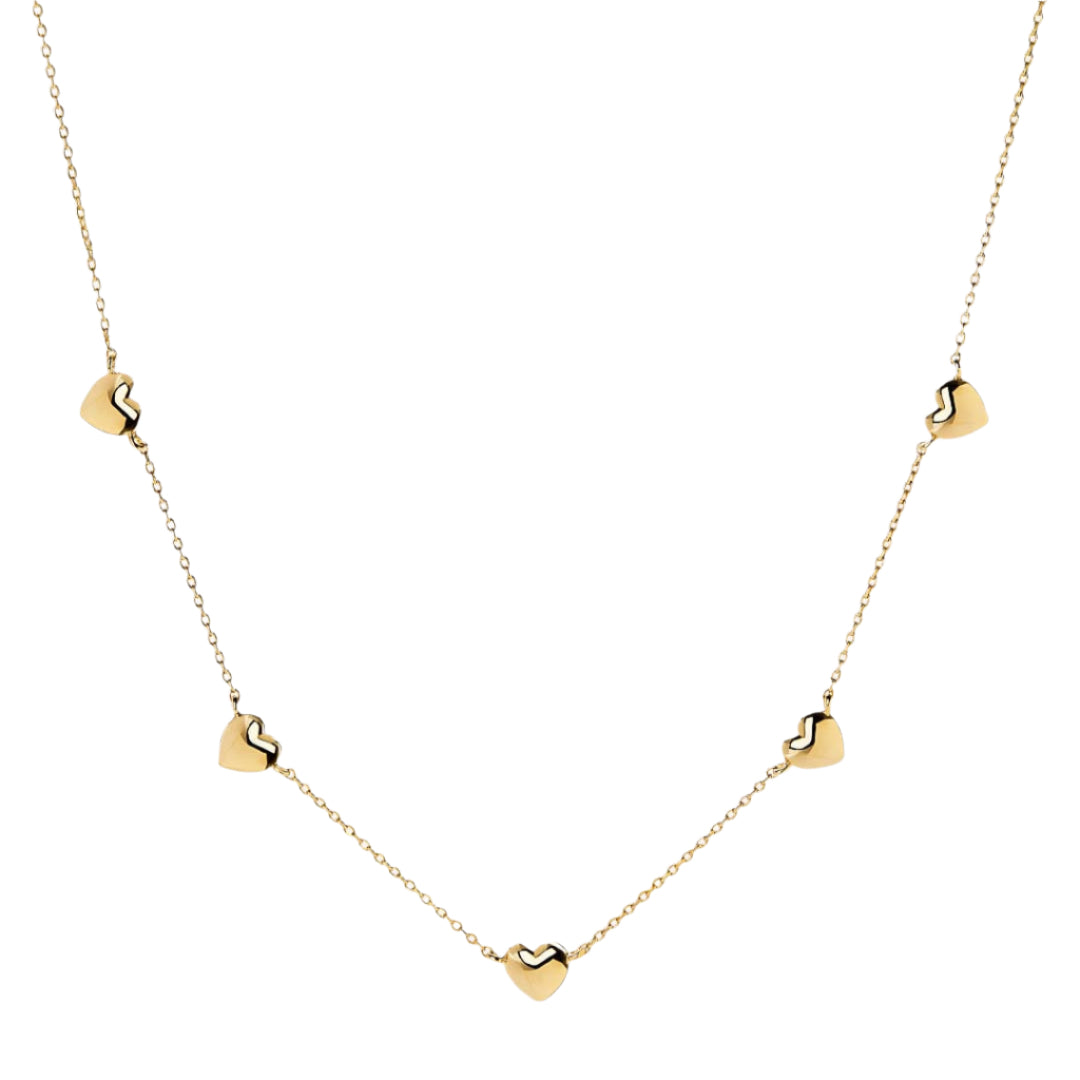 Tiny hearts, big charm. The Lev Necklace is scattered with delicate heart stations that catch the light and layer like a dream. Low-key romantic, high-key wearable.