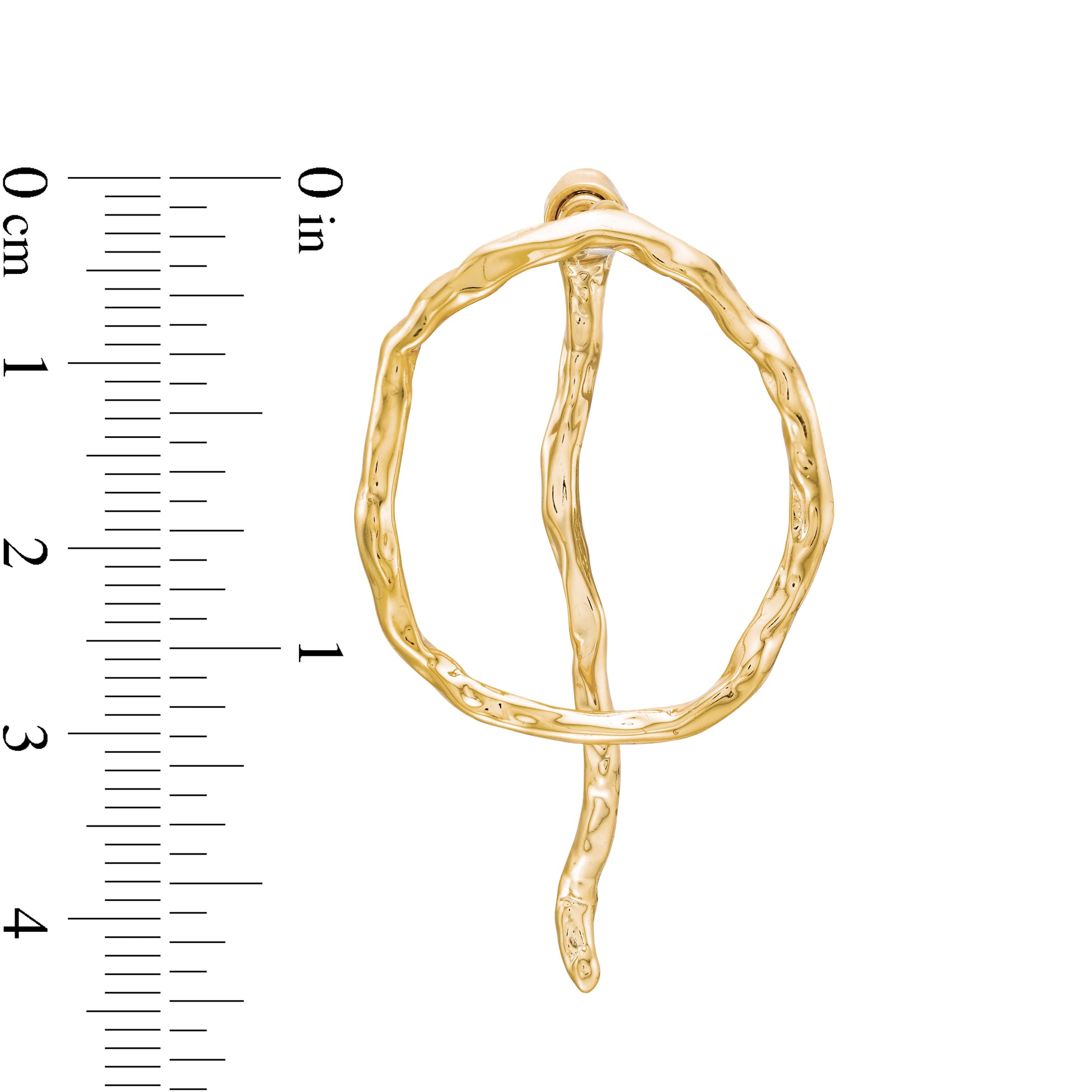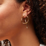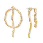 The Aspen Front and Back Earrings in Gold by Rocksbox Redefined feature a unique front-facing hoop and a behind-the-ear drop for an unexpected statement. These earrings are made of high polish, 14k gold-plating, and measure 2.25". Made with reclaimed materials.