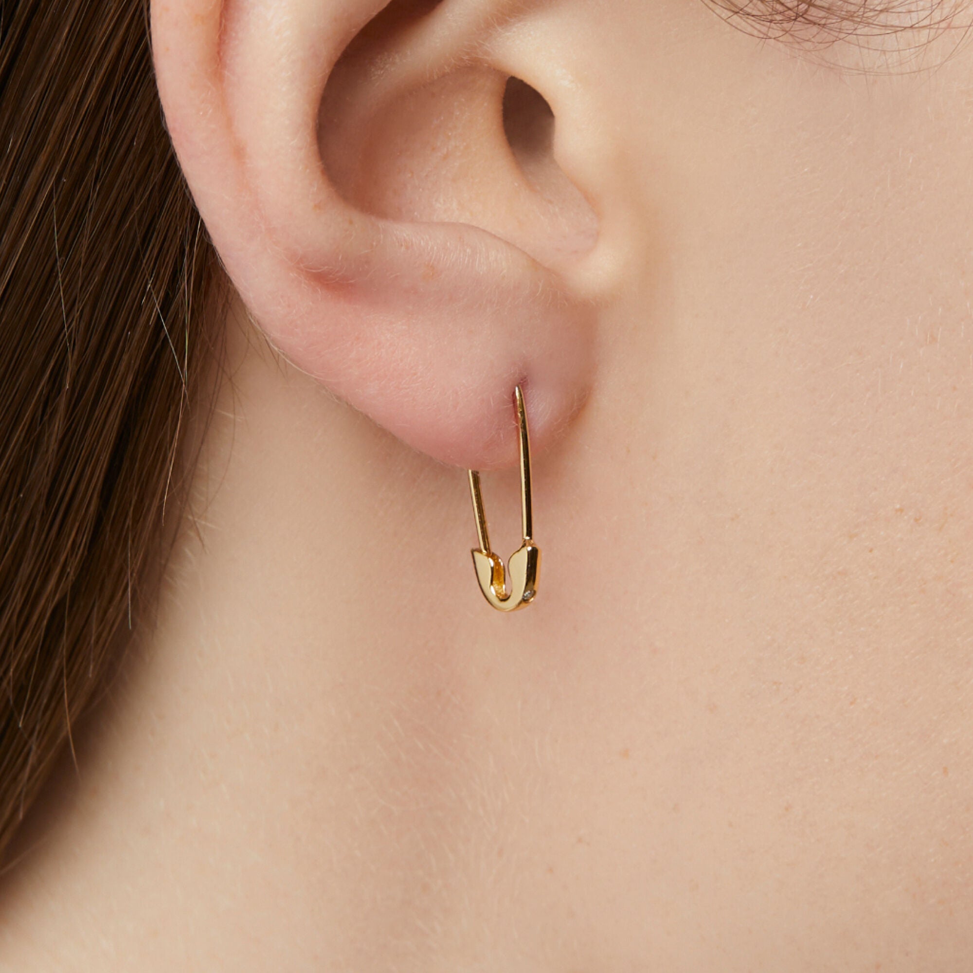 Customize your ear game by fastening on these safety pin earrings crafted in 100% recycled Sterling Silver. These safety pin earrings dipped in 14k gold are great to wear on their own or stack with other earrings.