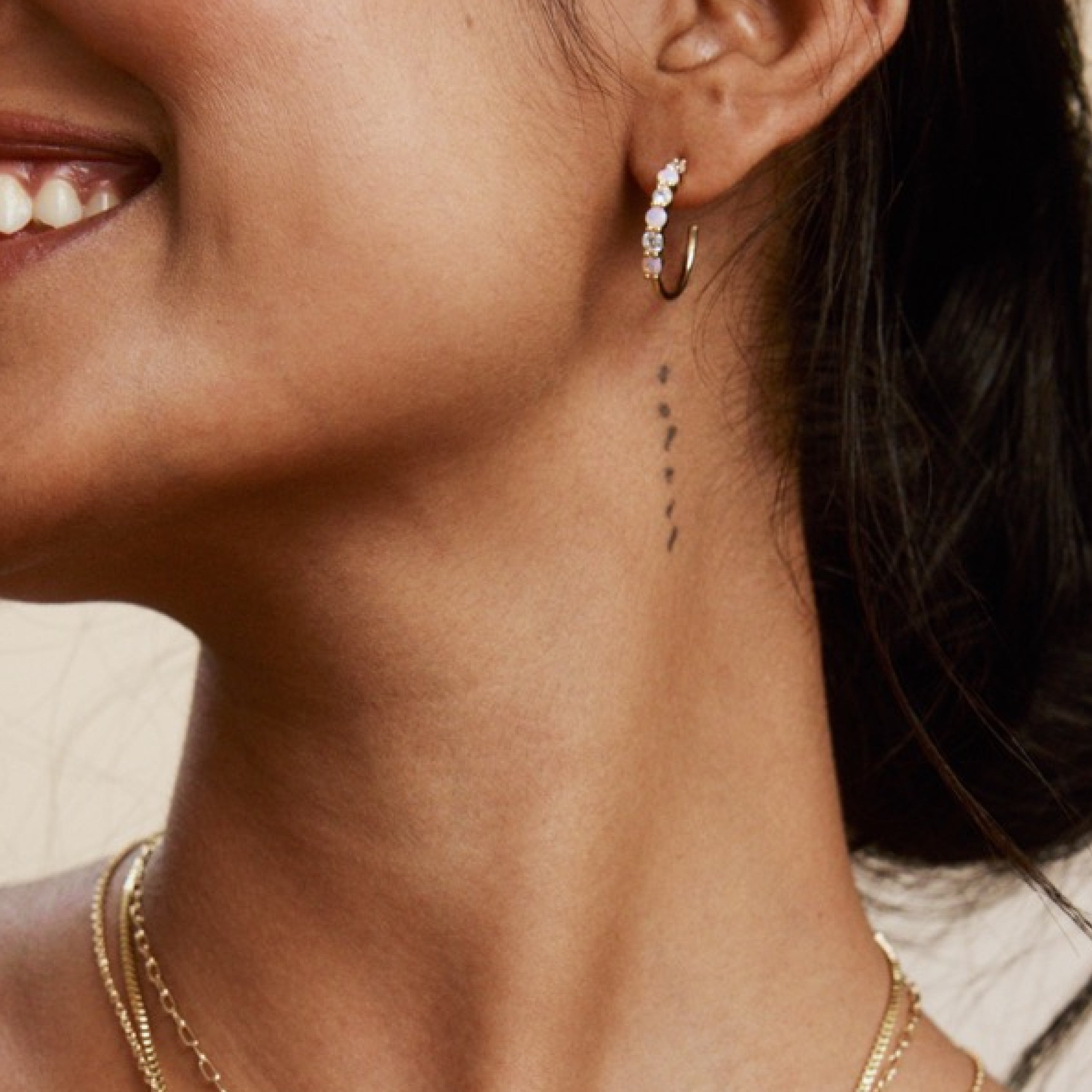 We teamed up with Joy Dravecky to create a fun version of their best-selling Alexandria Midi Hoops. These hoops are an absolute essential! With alternating cz and opalite in an everyday size, these are bound to be your next go-to style!