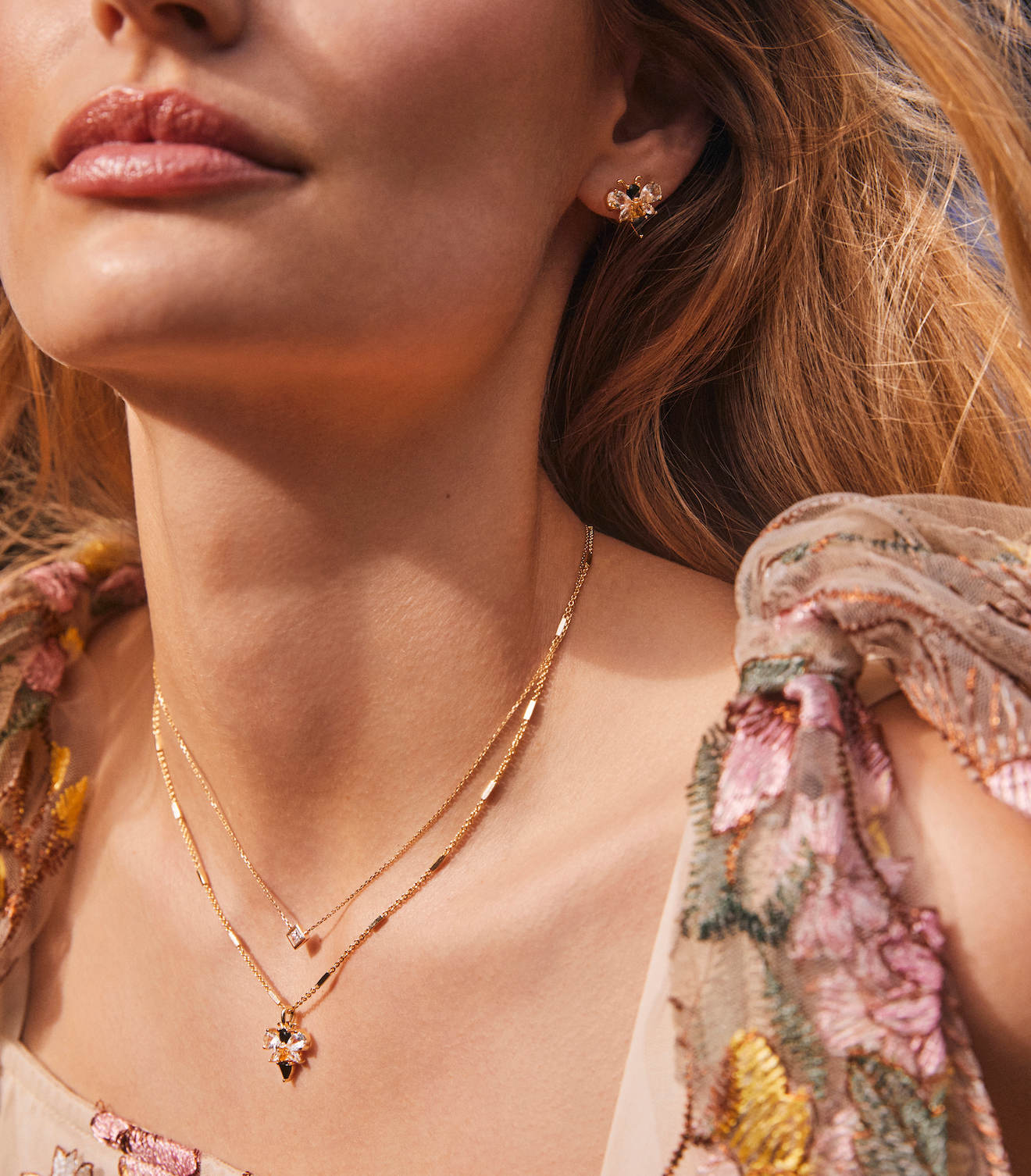Symbols of both strength and sweetness, these stud earrings feature 14k-golden plated bee shapes with shimmering cubic zirconia details.