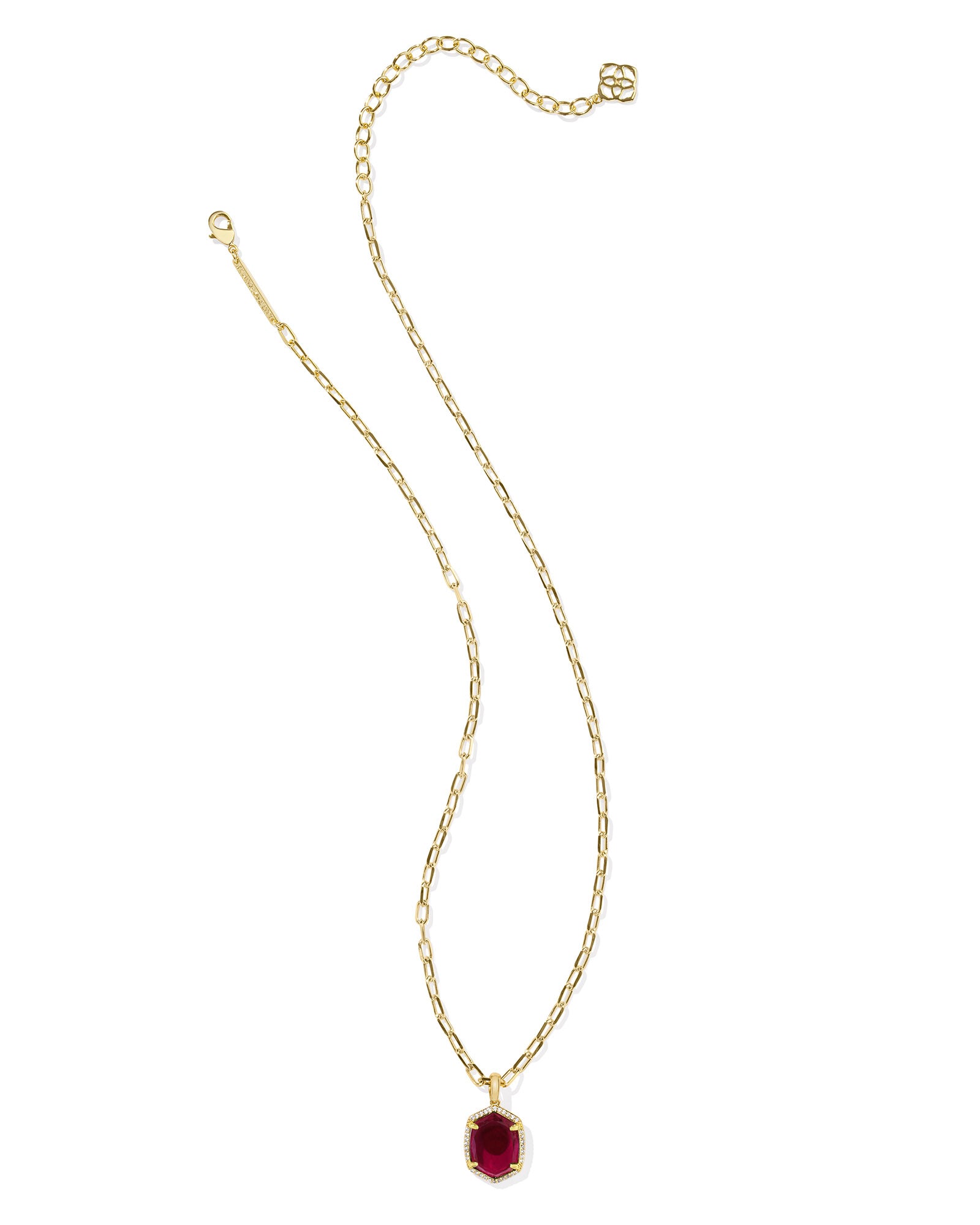 Daphne Pave Frame Short Pendant Necklace in Berry