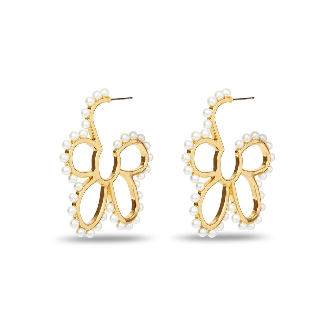 The Daisy Pearl Hoop Earrings by Lele Sadoughi are elevated basics featuring a fun and eye-catching flower design. These unique earrings are made of high polish 14k gold plating.