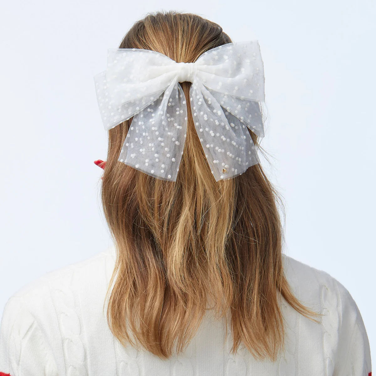 The perfect classic bow barrette to accessorize hair when half up, or accent a pony tail. Featuring the romantic fabrics and colors of the Lele Sadoughi winter collection.