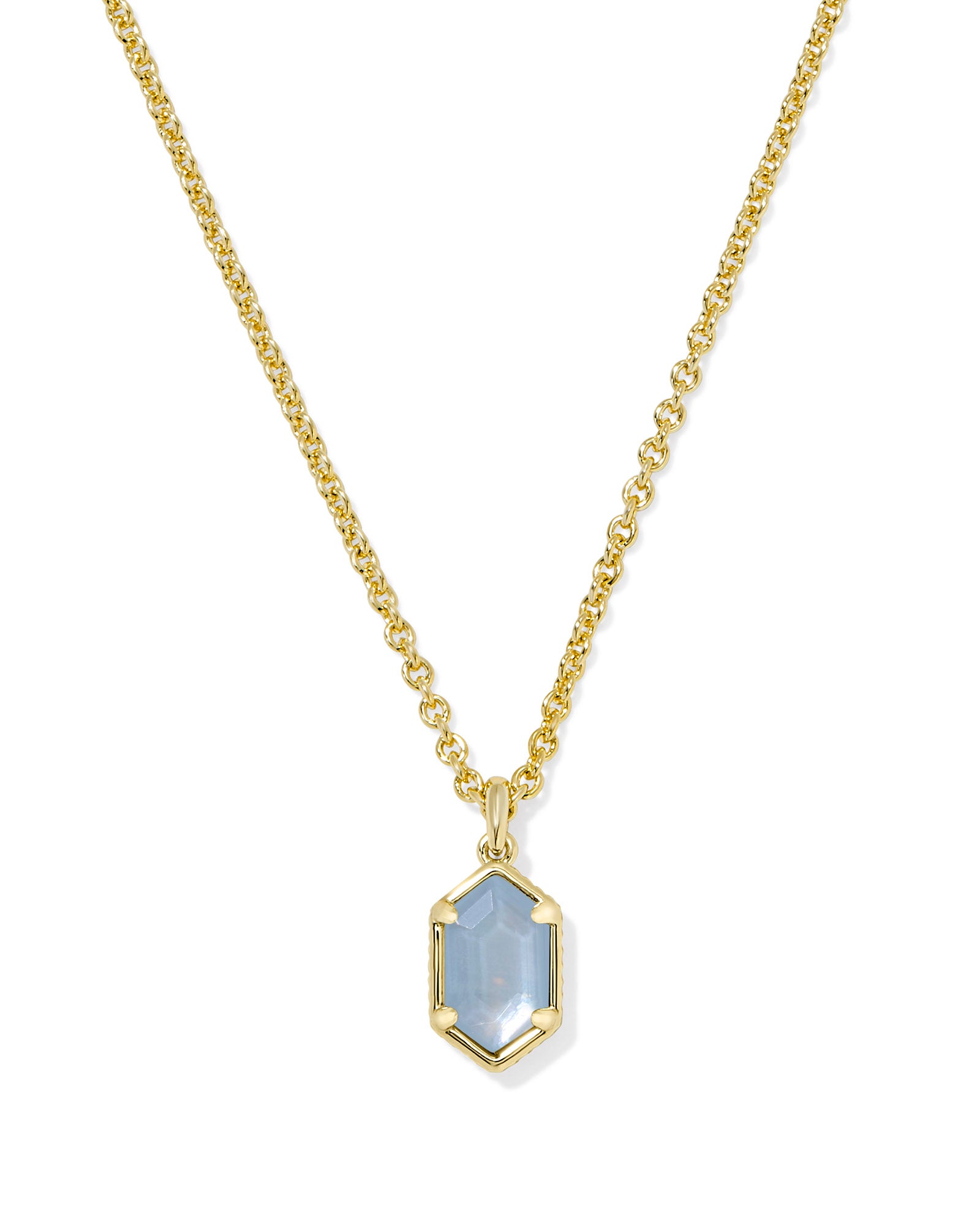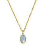 Hallie Short Pendant Necklace in Gold & Sky Blue Mother of Pearl