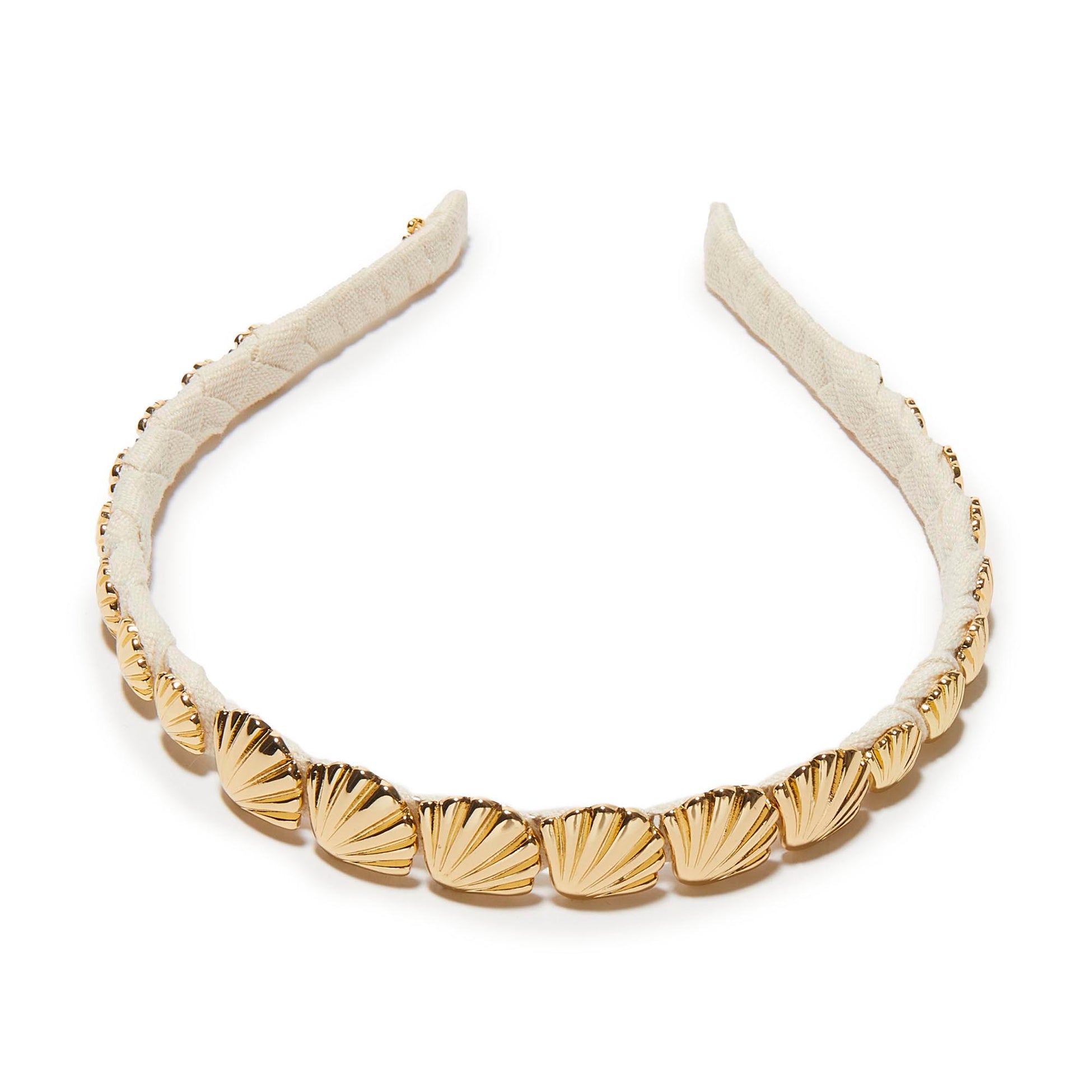 Chic style meets seaside charm. The Strand Shell Headband pairs soft woven cotton with shimmering 14k gold-plated shells for the perfect mix of relaxed and refined.
