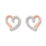 Pre-Owned Kay 1/10ct tw Round-cut Diamond Heart Earrings in 10k Rose Gold