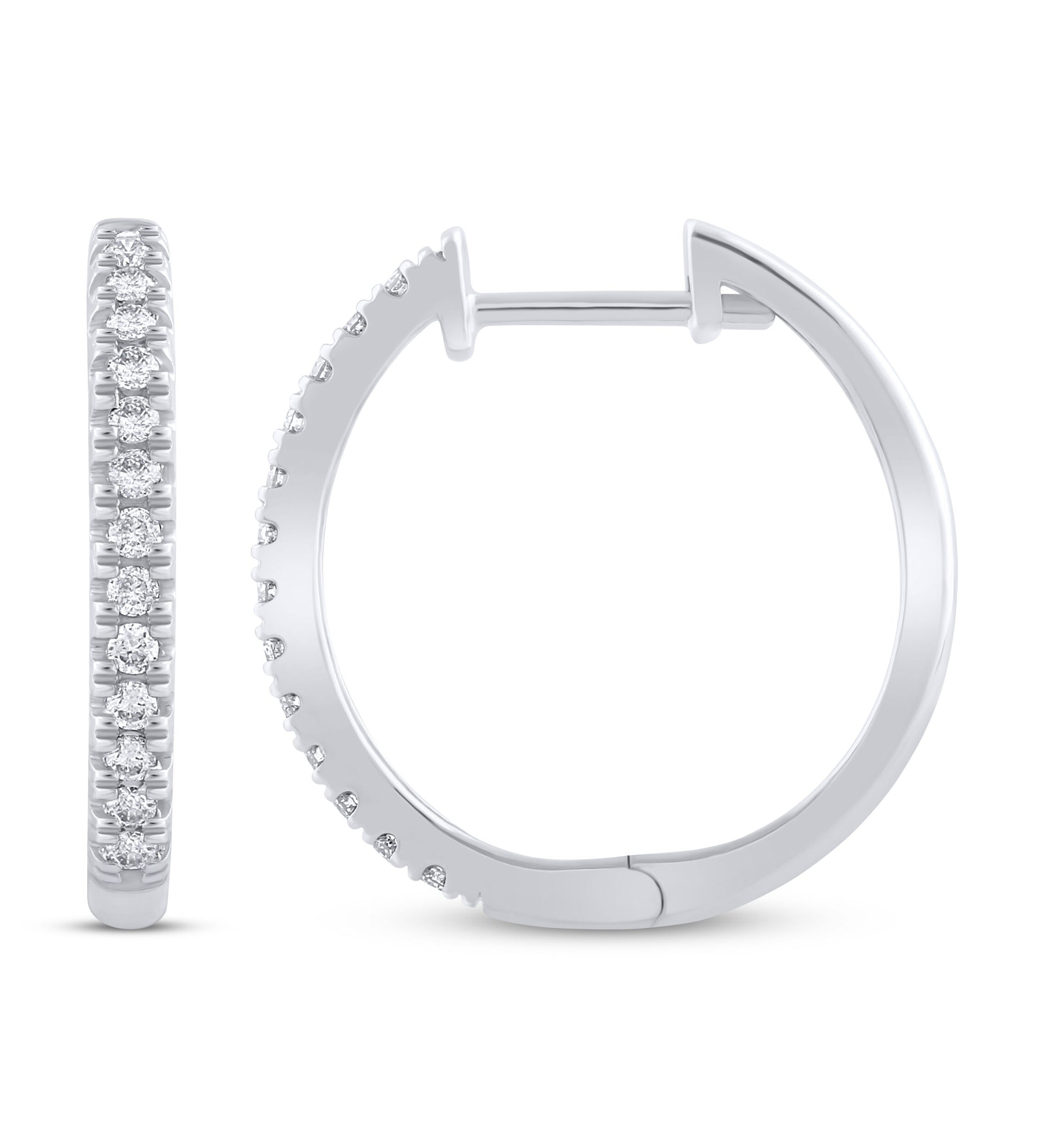Pre-Owned Kay 14k White Gold 1/3ct tw Pave Diamond Hoops
