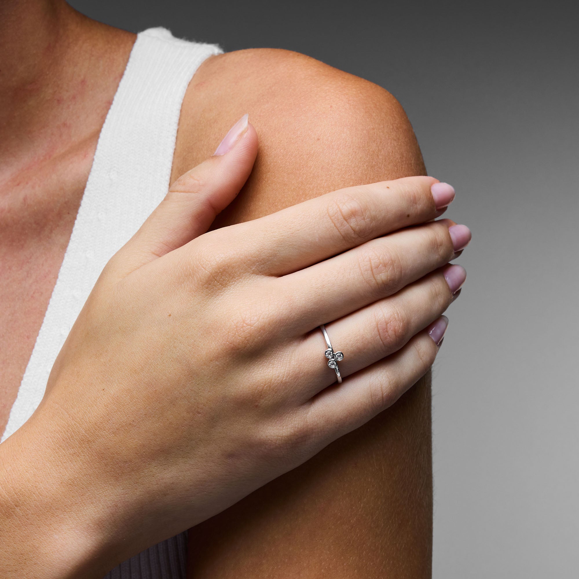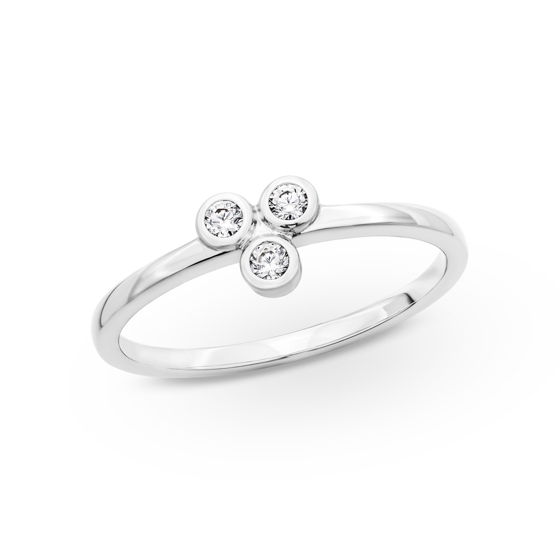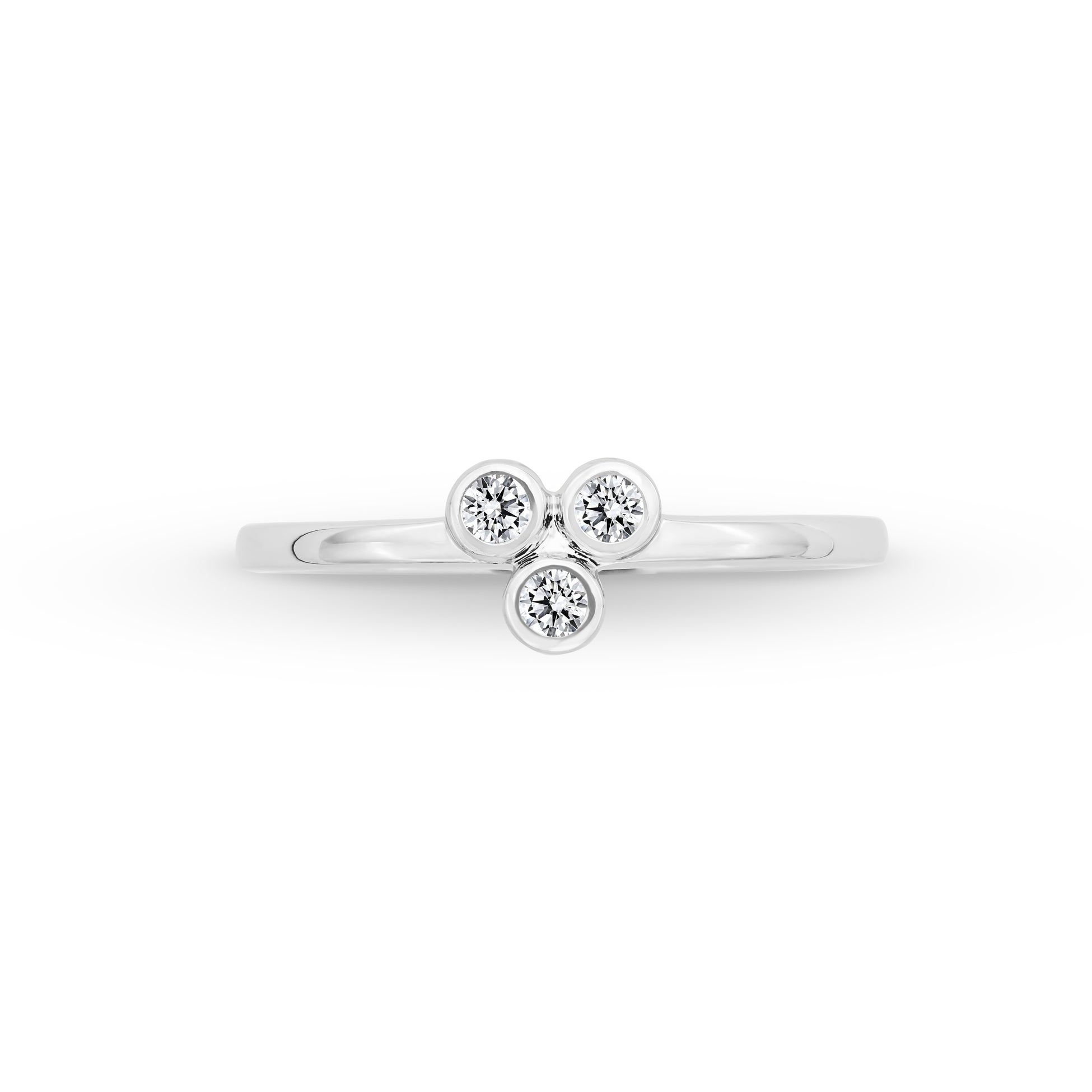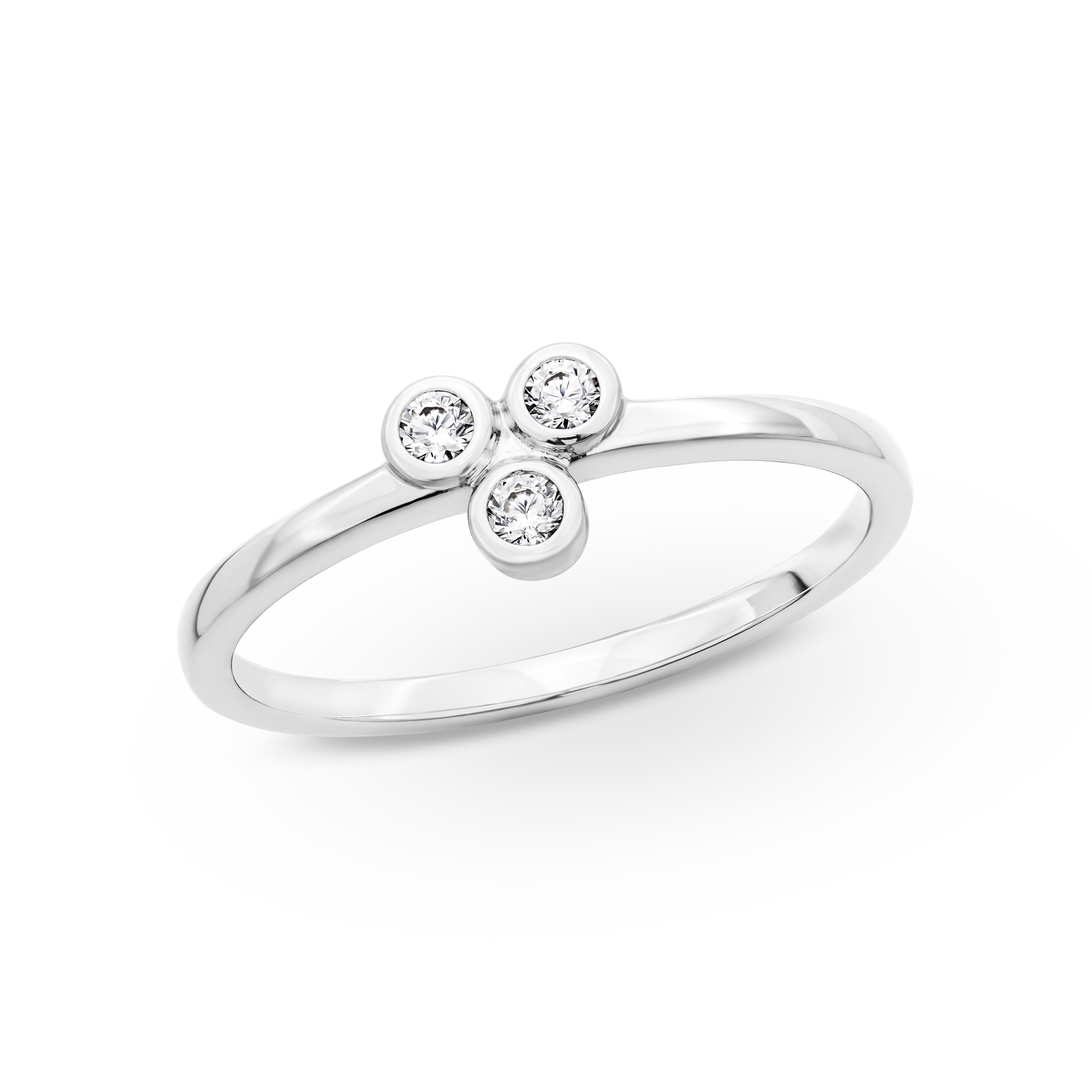 A smooth bezel setting highlights three lab-grown diamond accents—perfect for low-key sparkle that stacks effortlessly.