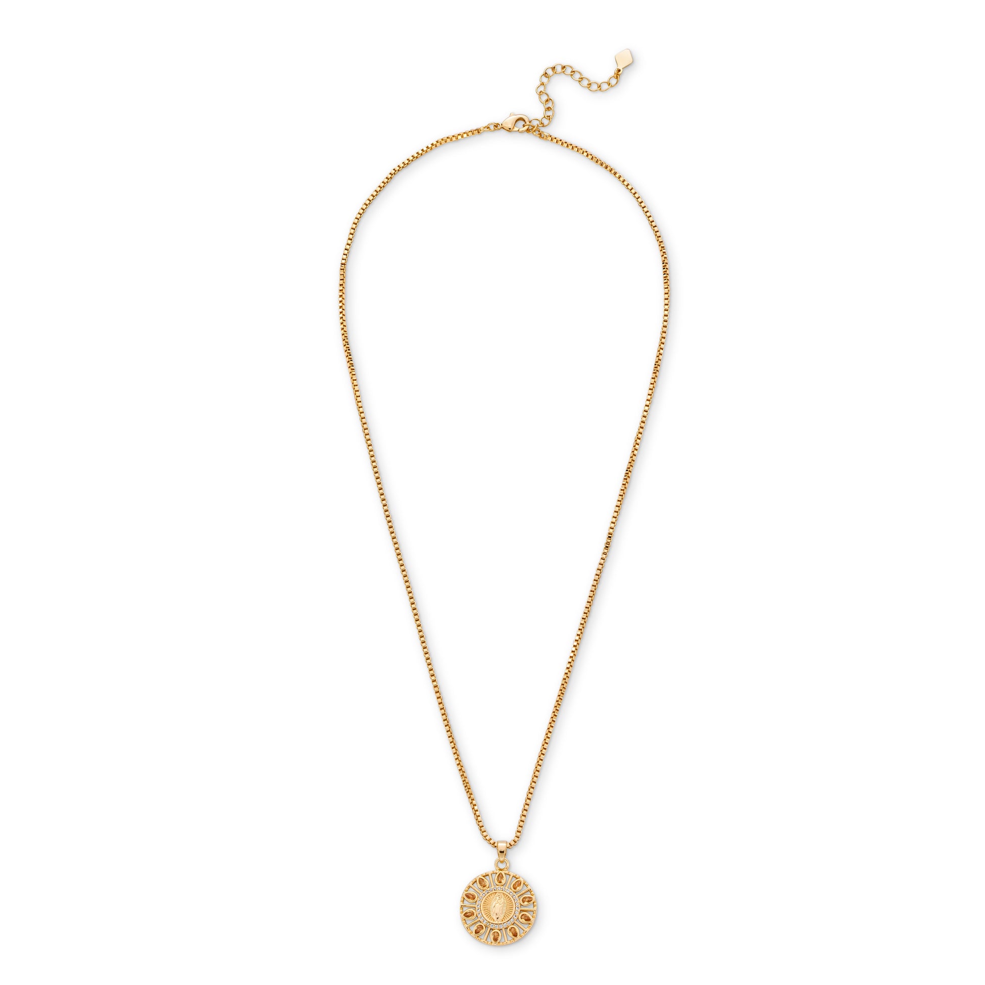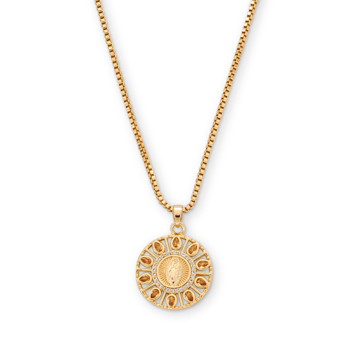 We teamed up with Joy Dravecky to create an exclusive of their best-selling Donna Maire Necklace. Perfected with a vintage feel, the Donna Marie decorated with champagne teardrop CZ surrounding Our Lady Guadalupe, is absolutely timeless.