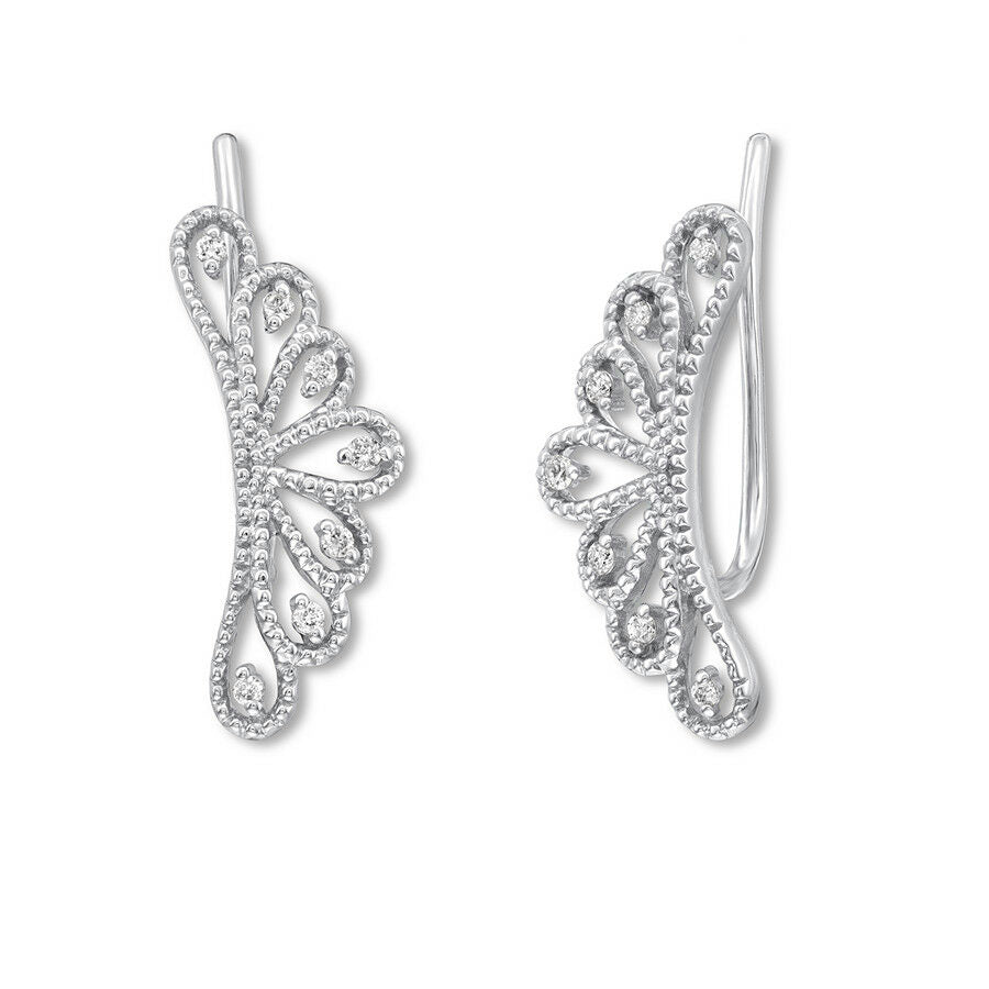 Pre-Owned Kay 1/15ct tw Diamond Emmy London Ear Climbers in Sterling Silver