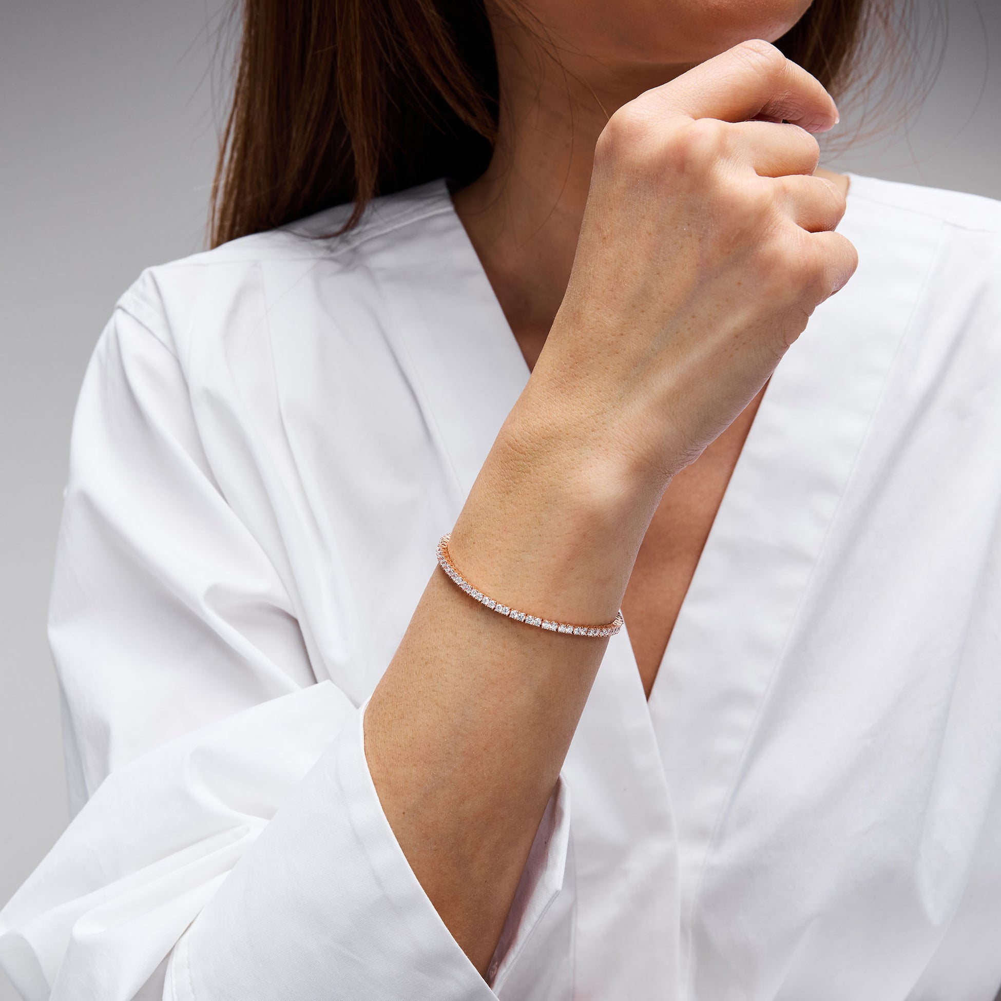 Modern elegance, with a romantic edge. This rose-toned tennis bracelet is designed to layer—or shine solo.