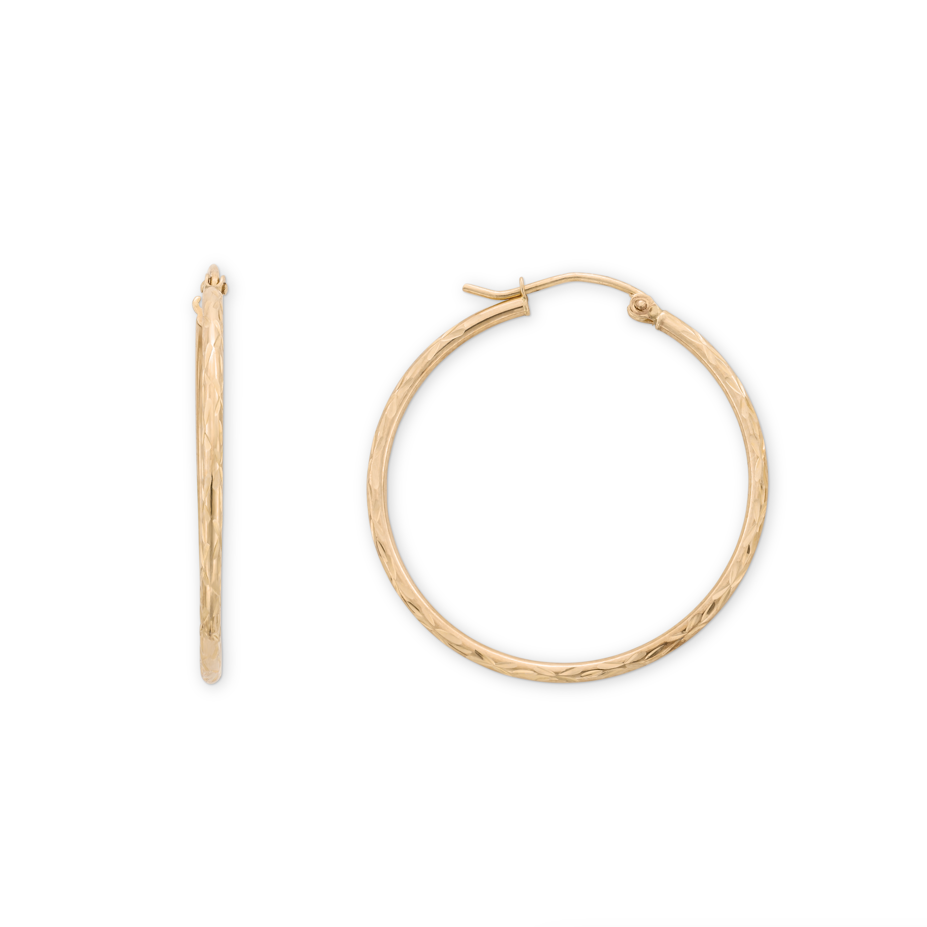 Everyday Textured Large 14k Solid Gold Hoop