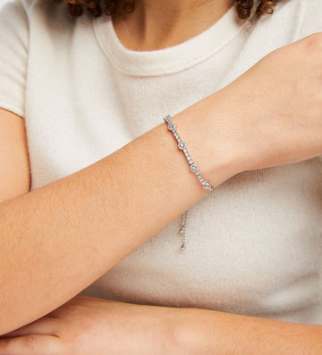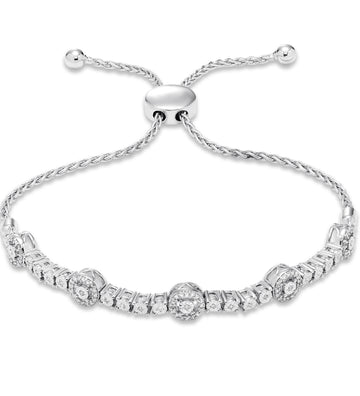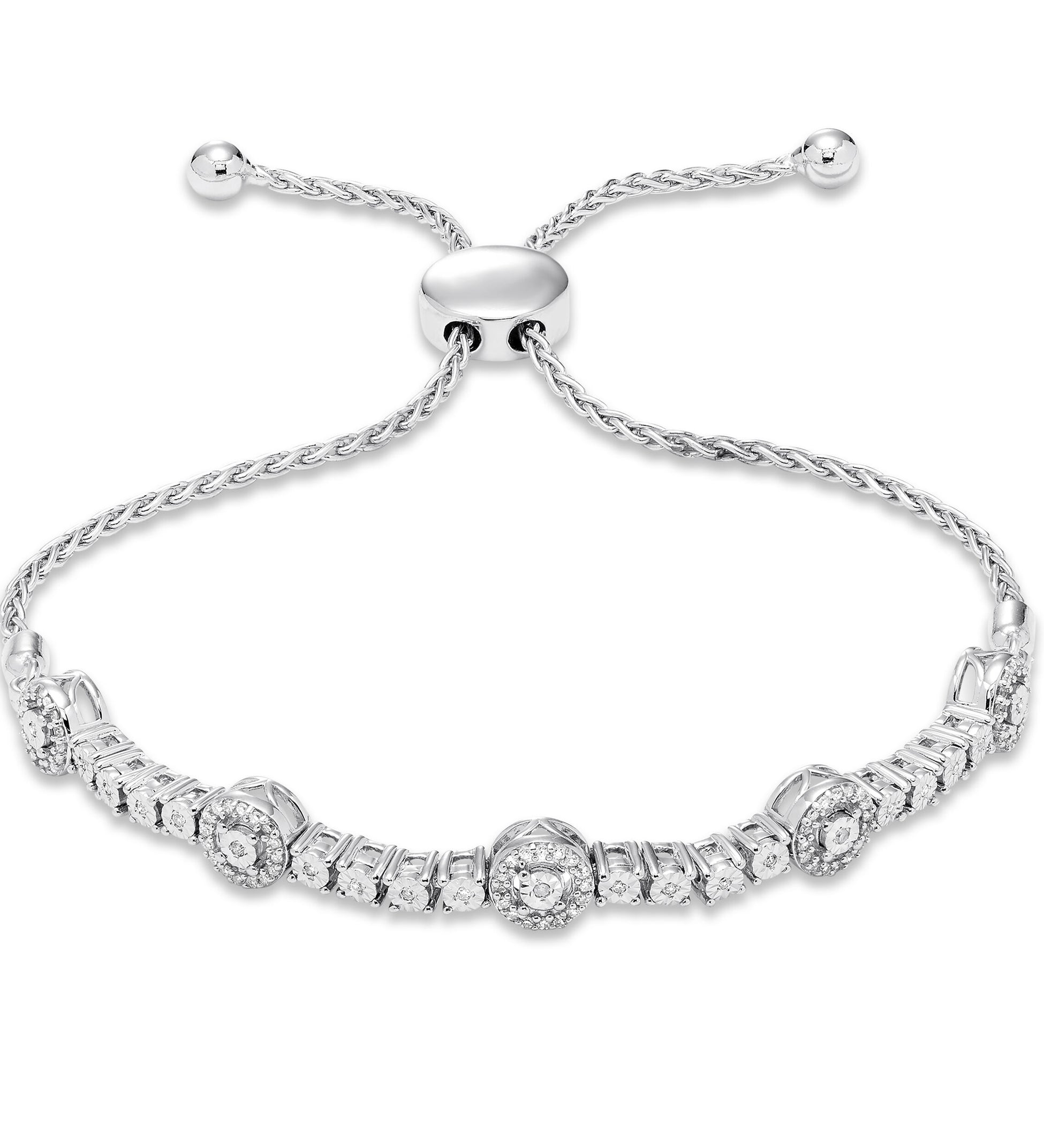 Pre-Owned Jared Sterling Silver 1/6ct Diamond Circle Slider Bracelet