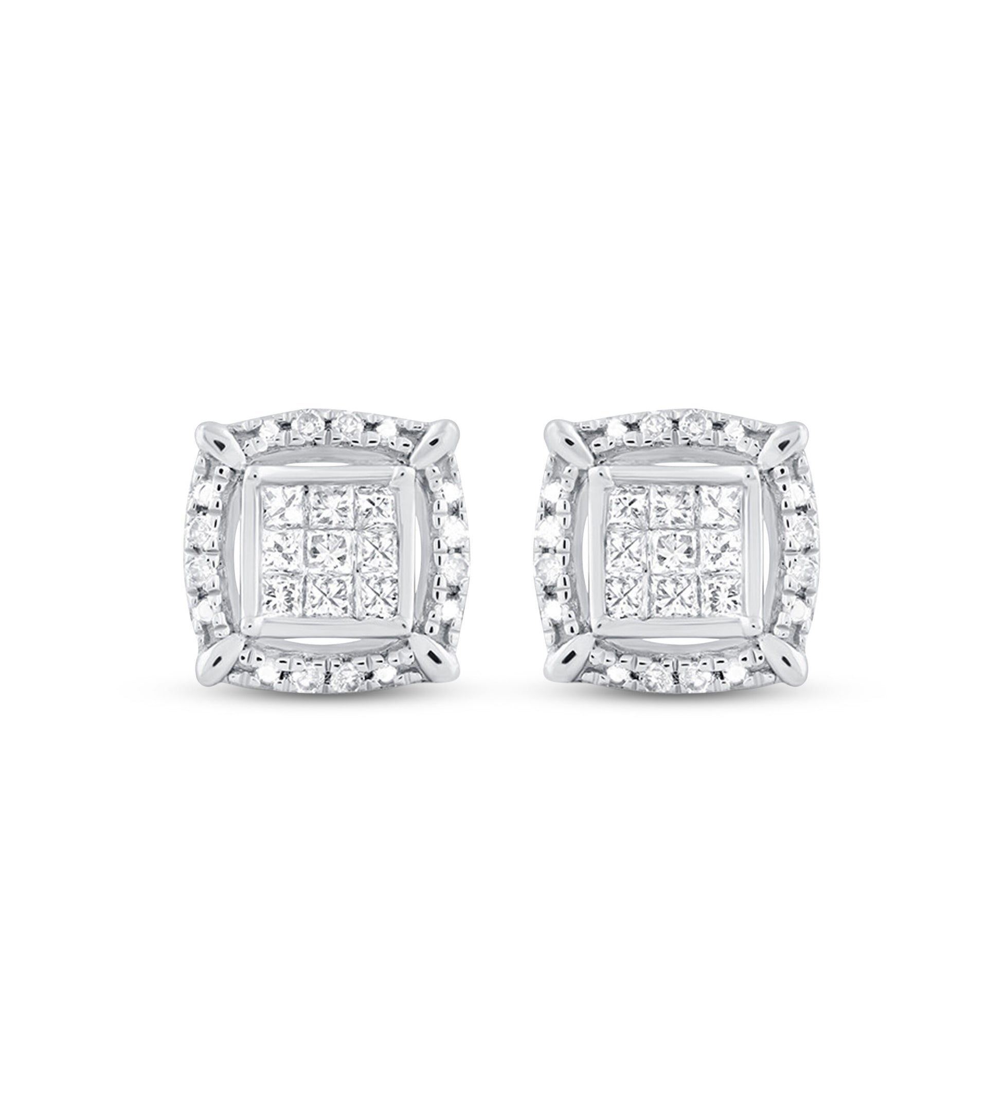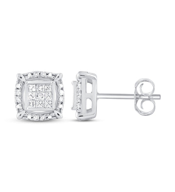 Pre-Owned Kay 10k White Gold 1/5ct Round Diamond Princess Studs