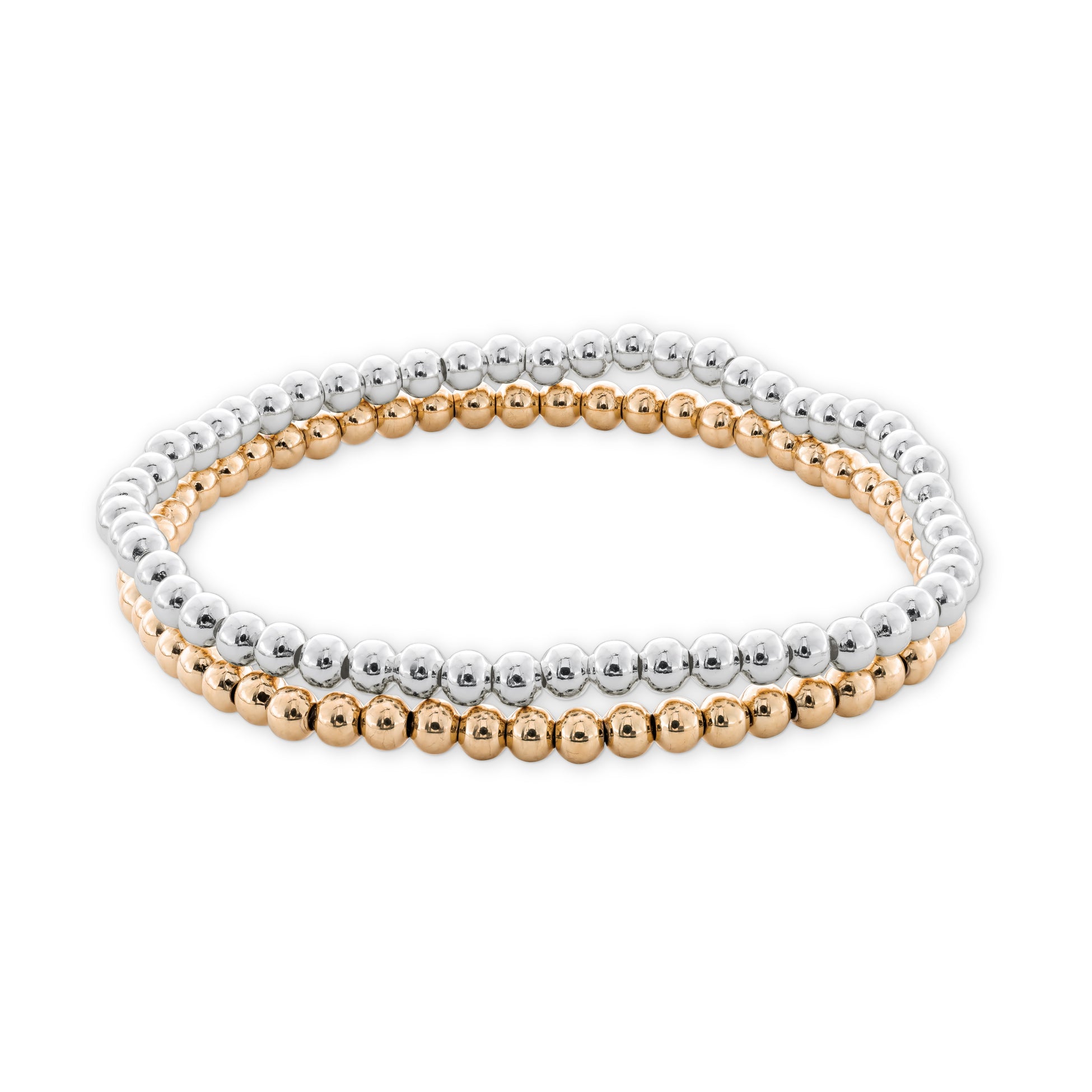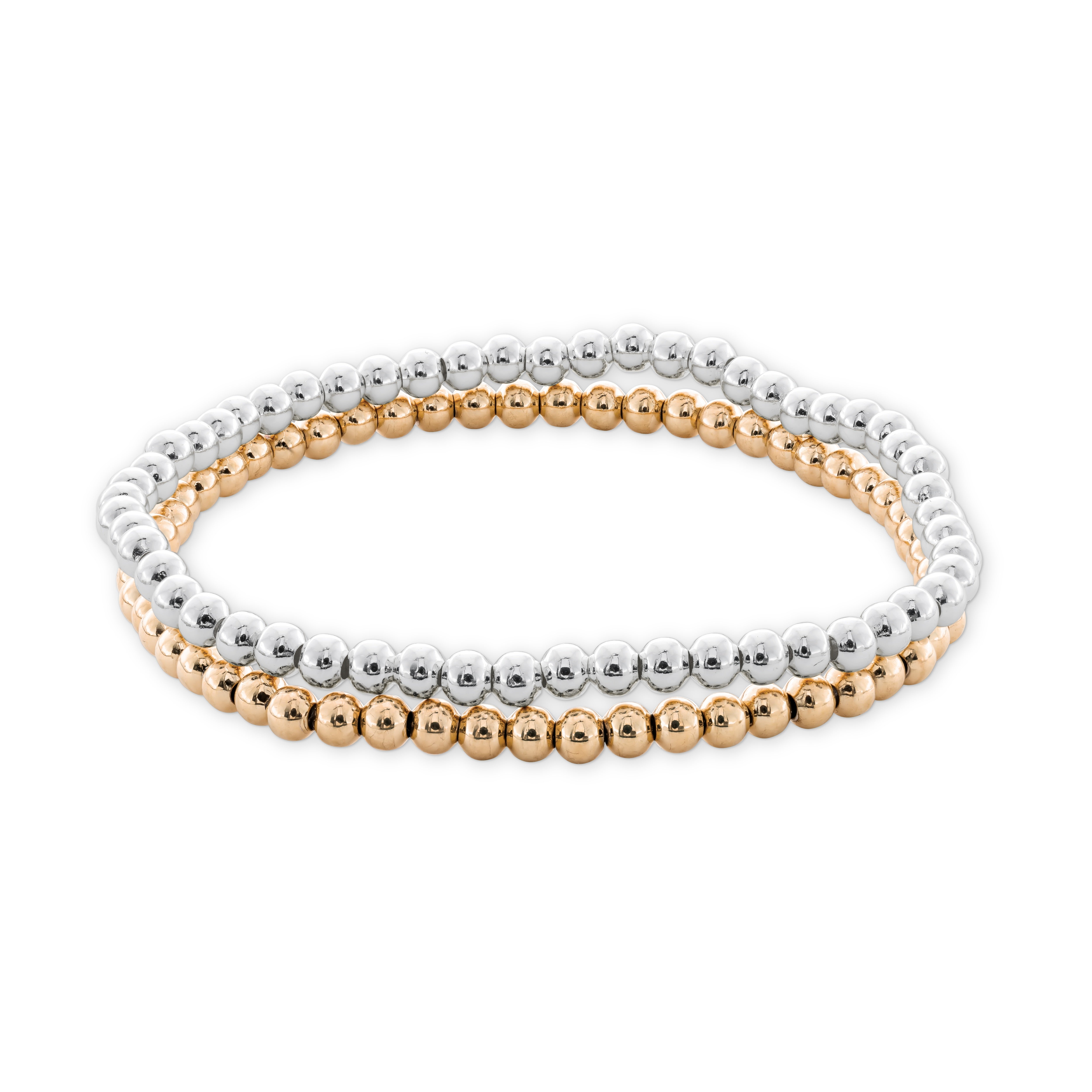 Mixed metals, maximum ease. This stretchy two-bracelet set is finished in water-resistant IP 10K gold plating and silver — made for layering and built to keep up.