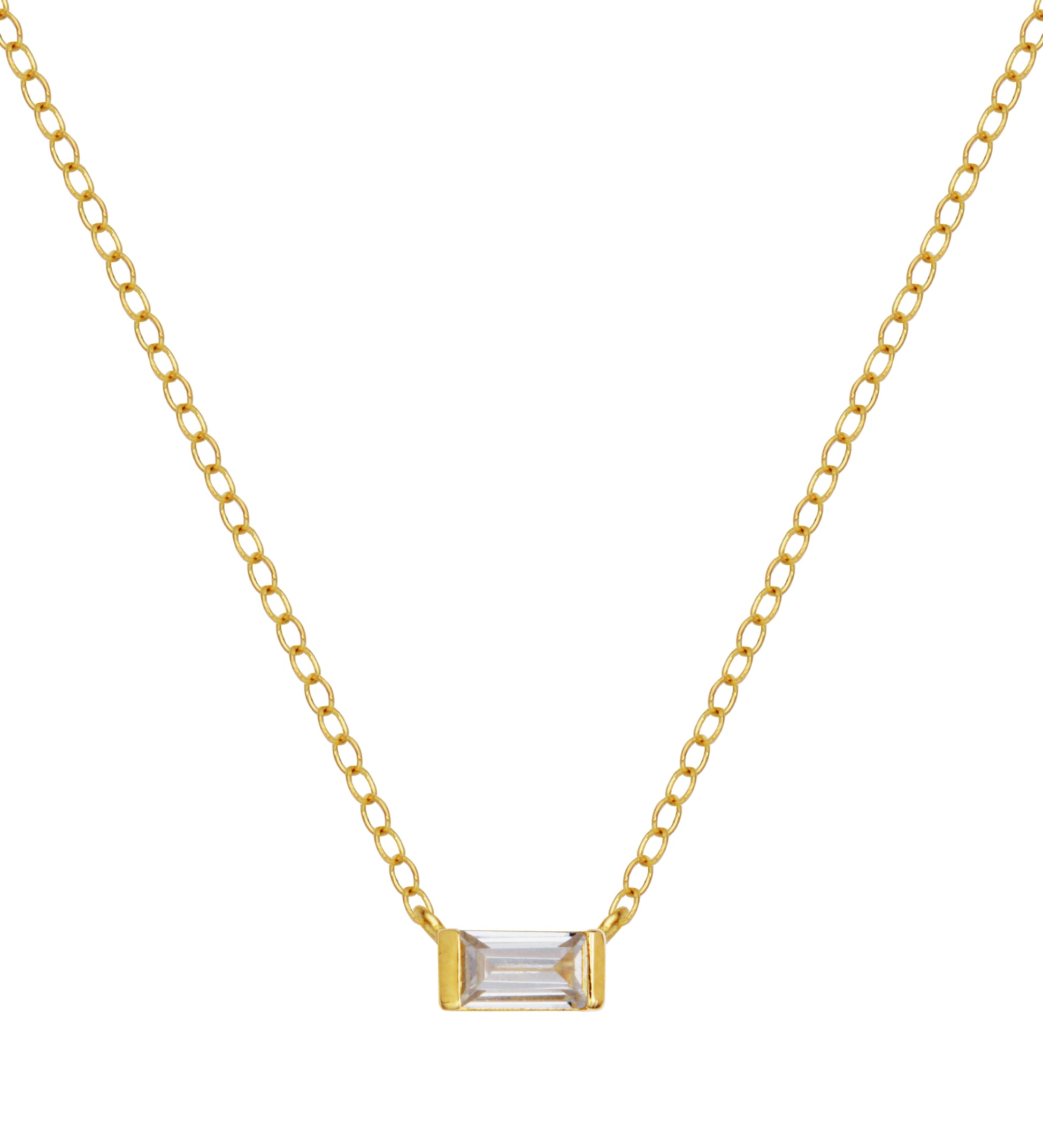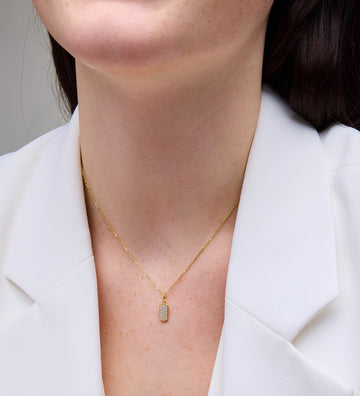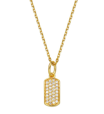 18k Gold Plated Pave CZ Dog Tag Pendant Necklace