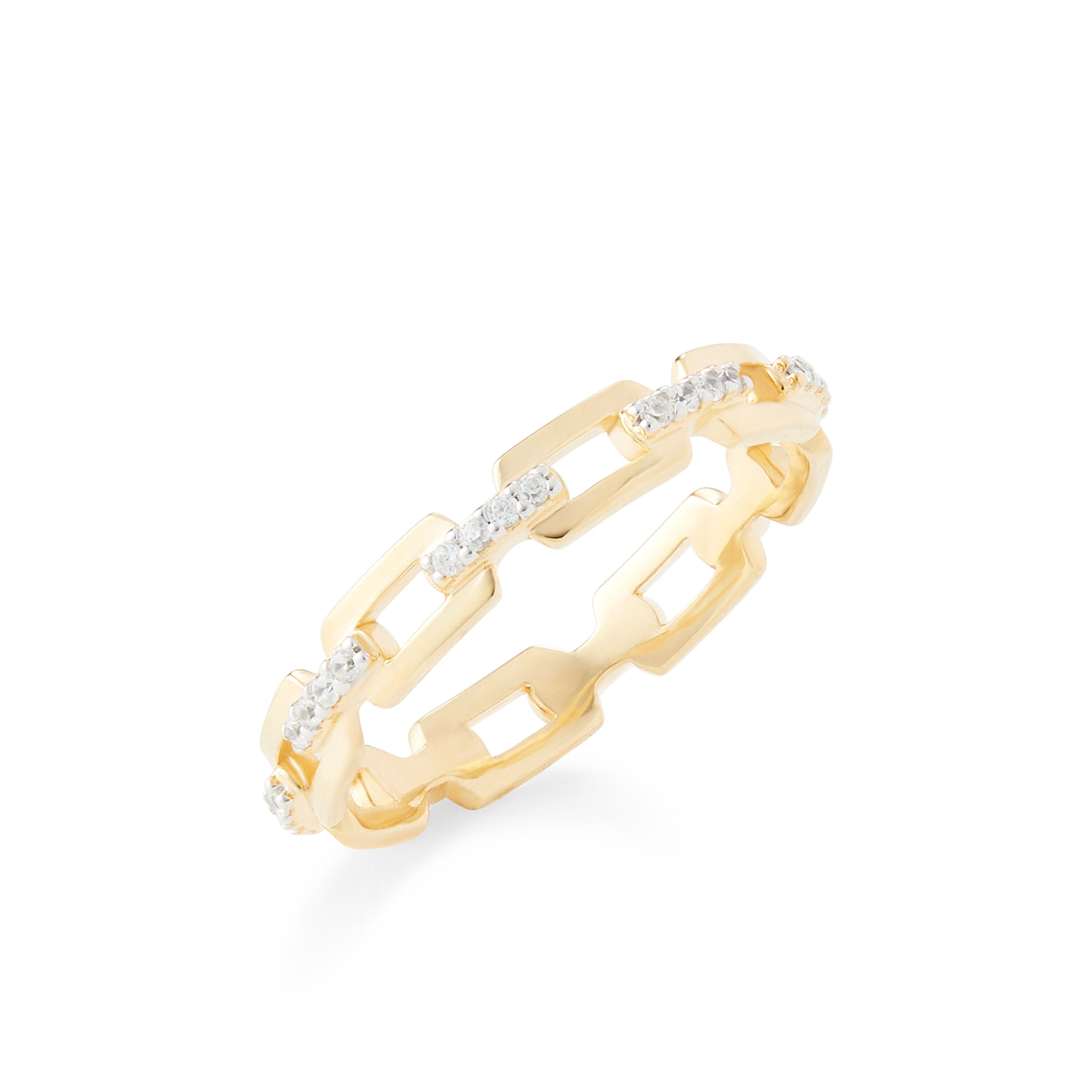 The Rocksbox 18k Gold Plated Simple Chain Ring is an 18k gold plated ring featuring a rectangular chain link design with pave accents. Finished in a high polish shine.