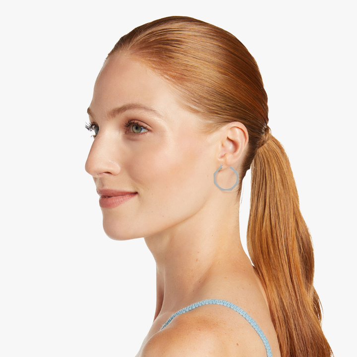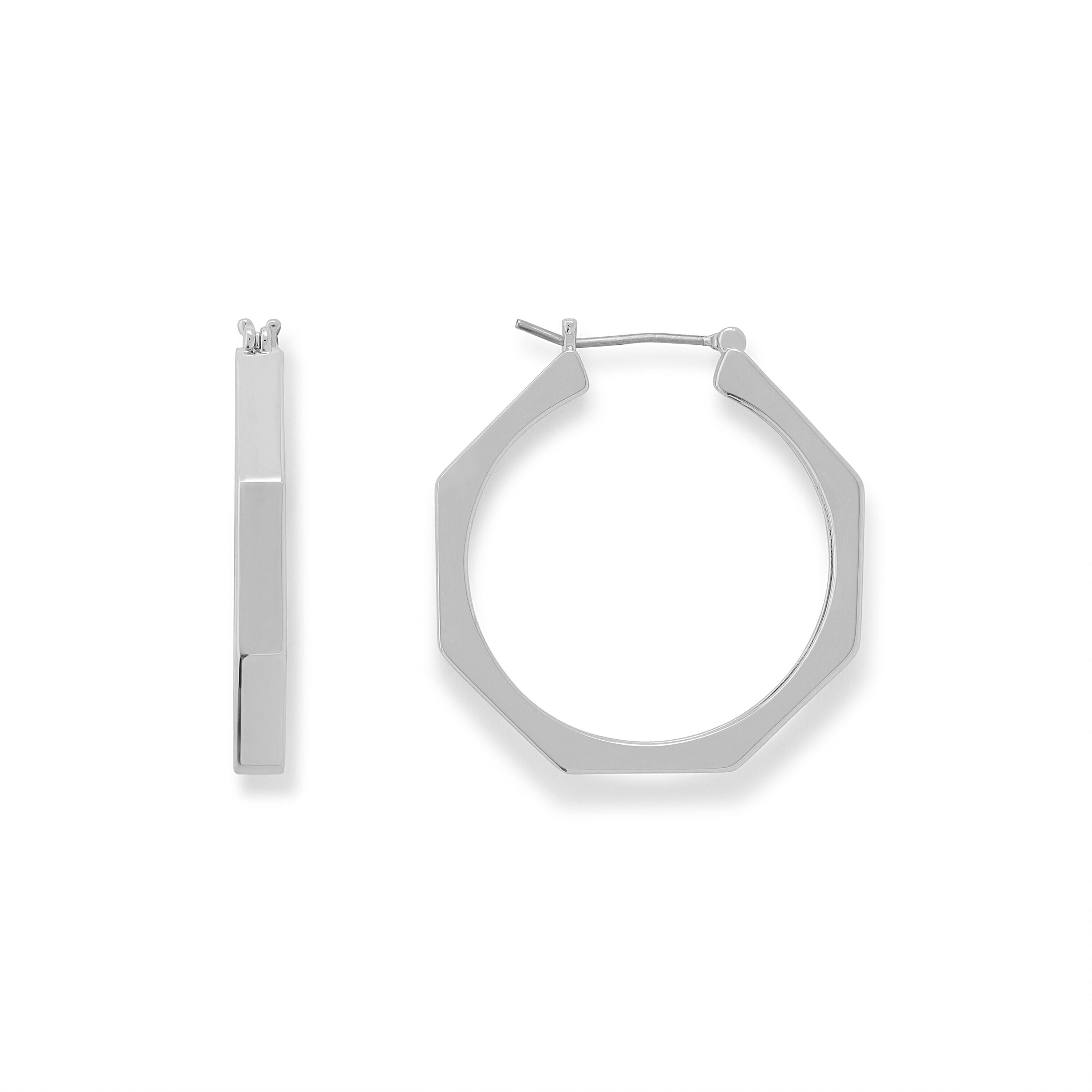The Atlanta Hoops in Silver by Rocksbox are modern, geometric hoops perfect for everyday wear. These earrings are made of high polish silver plating.