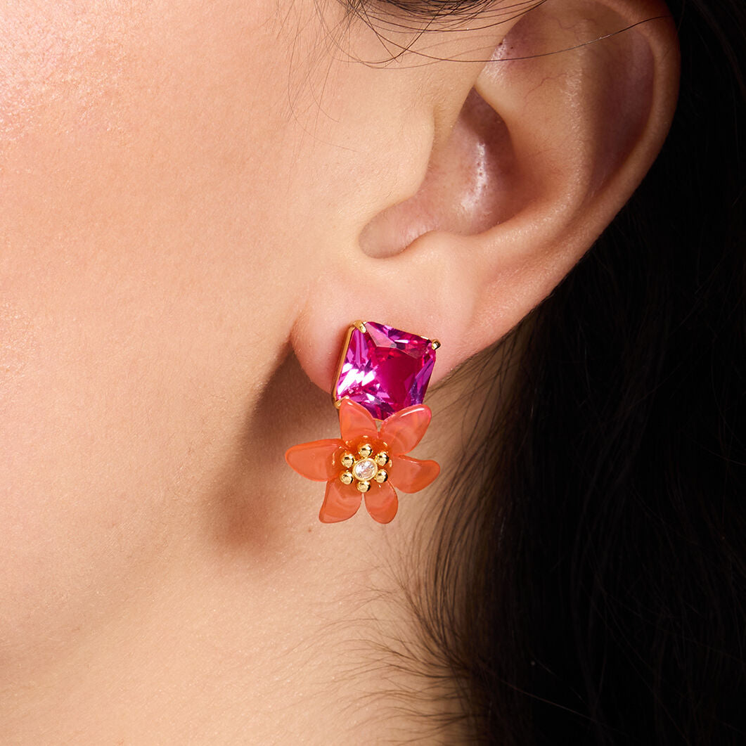 The Brighten Up Statement Studs in Pink & Orange by kate spade new york are an elevated everyday essential that add a beautiful pop of color. These earrings are made of high polish, 18k gold plating and feature a colorful resin flower adorned with delicate crystals.